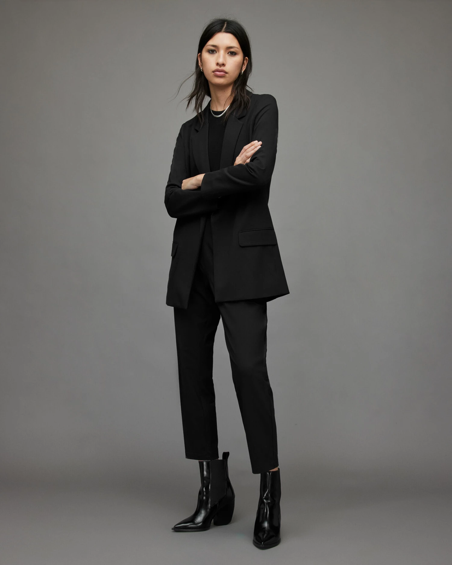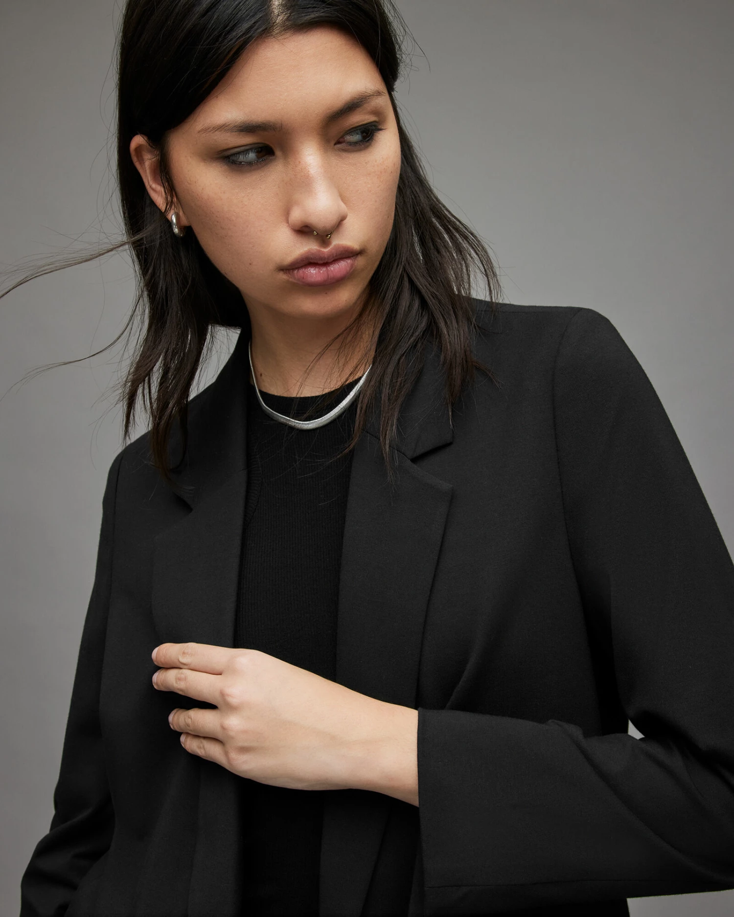 Tailoring for everyday. The Aleida Blazer is a crowd favourite. The jersey fabric is made from a soft and lightweight cotton blend material. It’s cut to a regular silhouette with an open front β a versatile top layer.