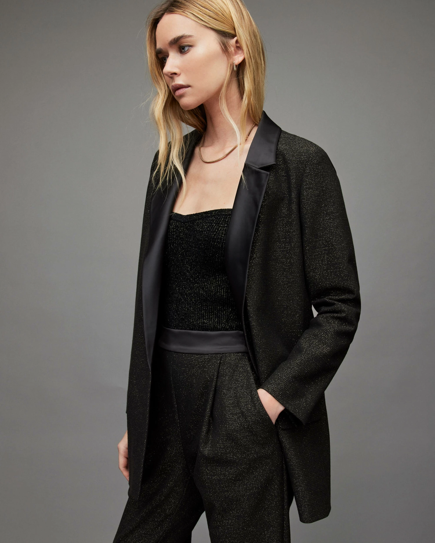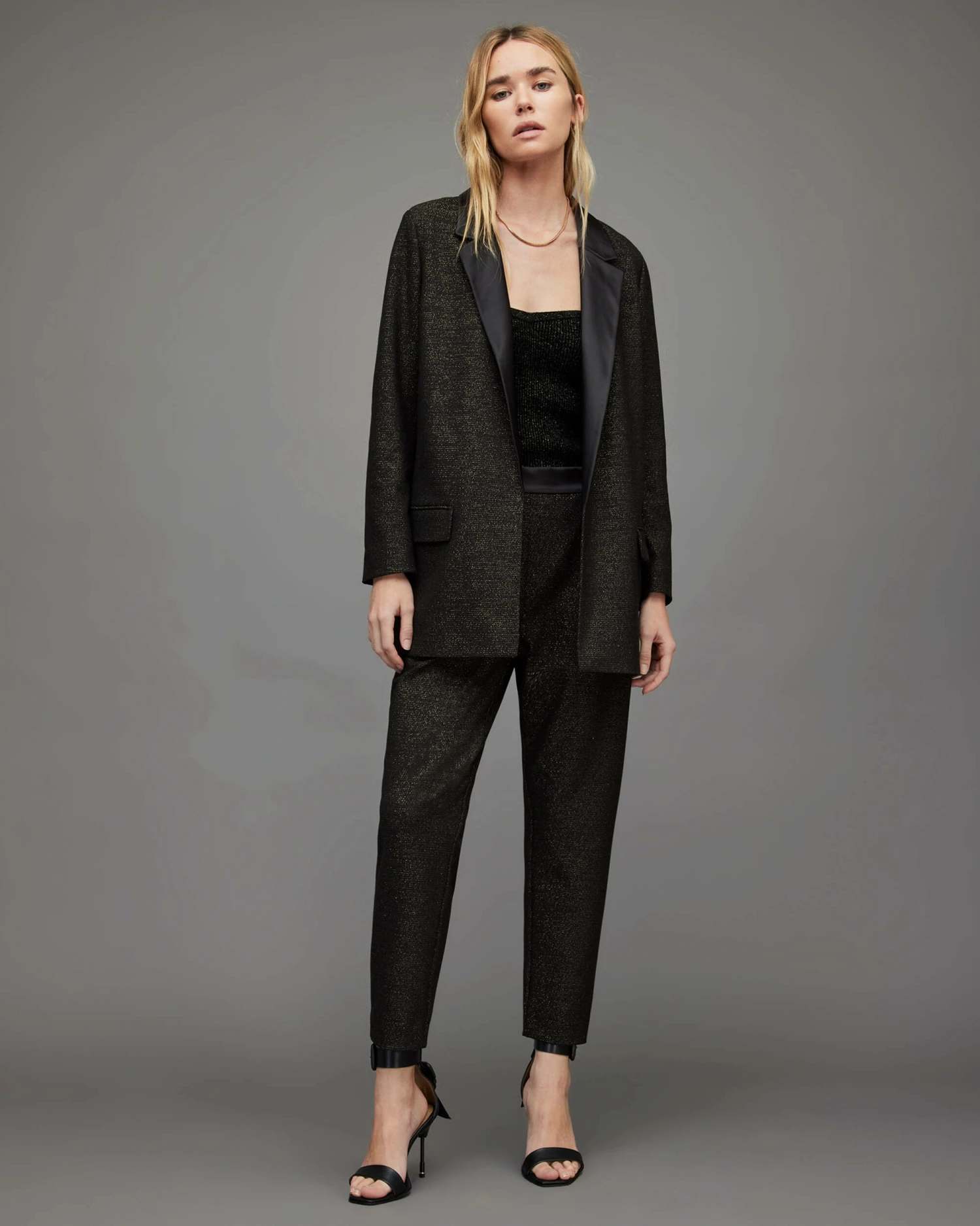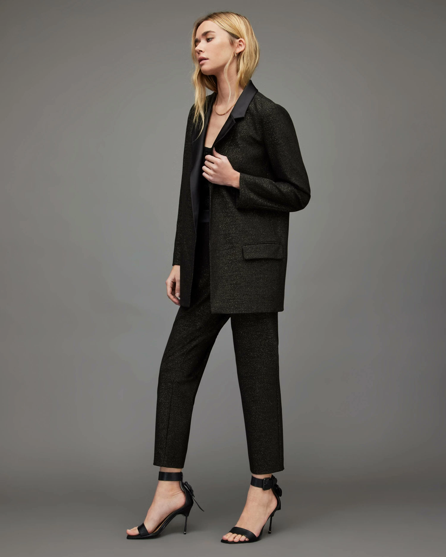 Tailoring for everyday. The Aleida Blazer is a crowd favourite. Crafted from a shimmer fabric, it’s cut to relaxed silhouette with an open front β a top layer for party season.