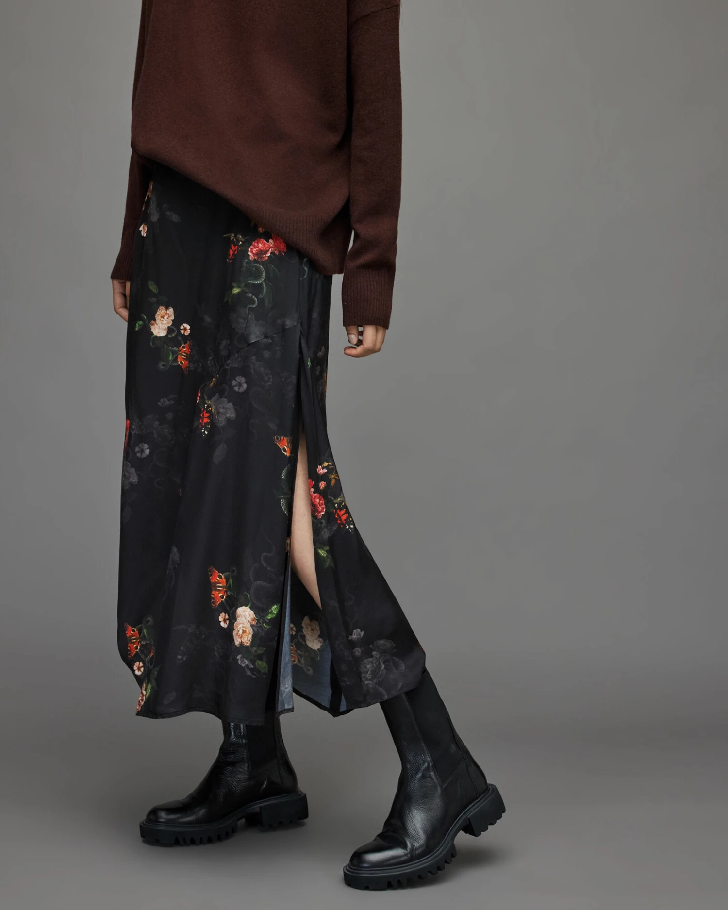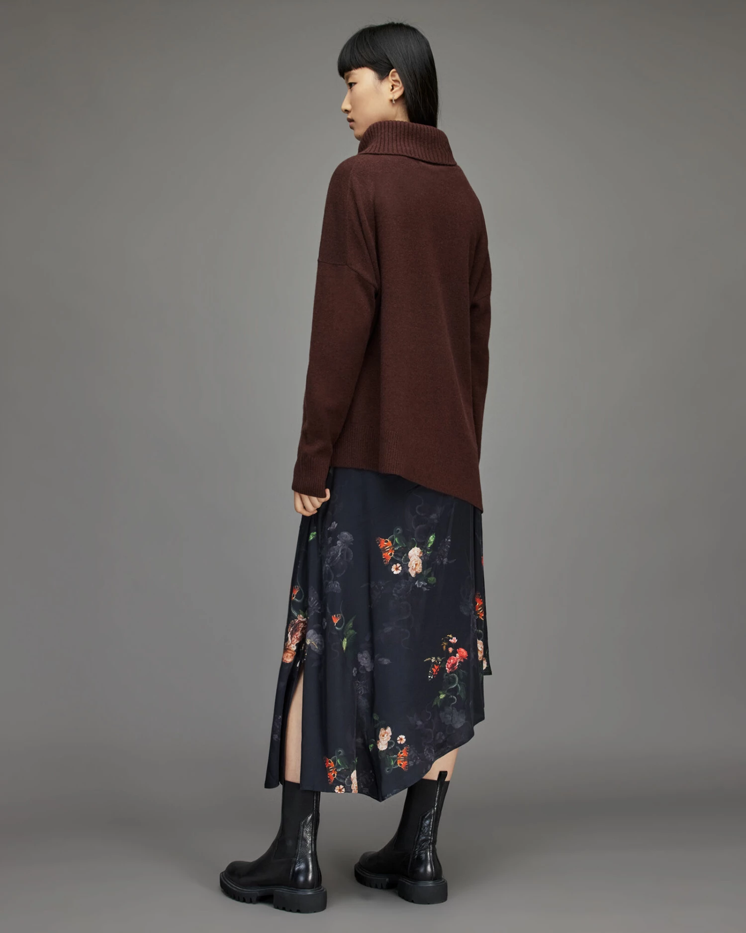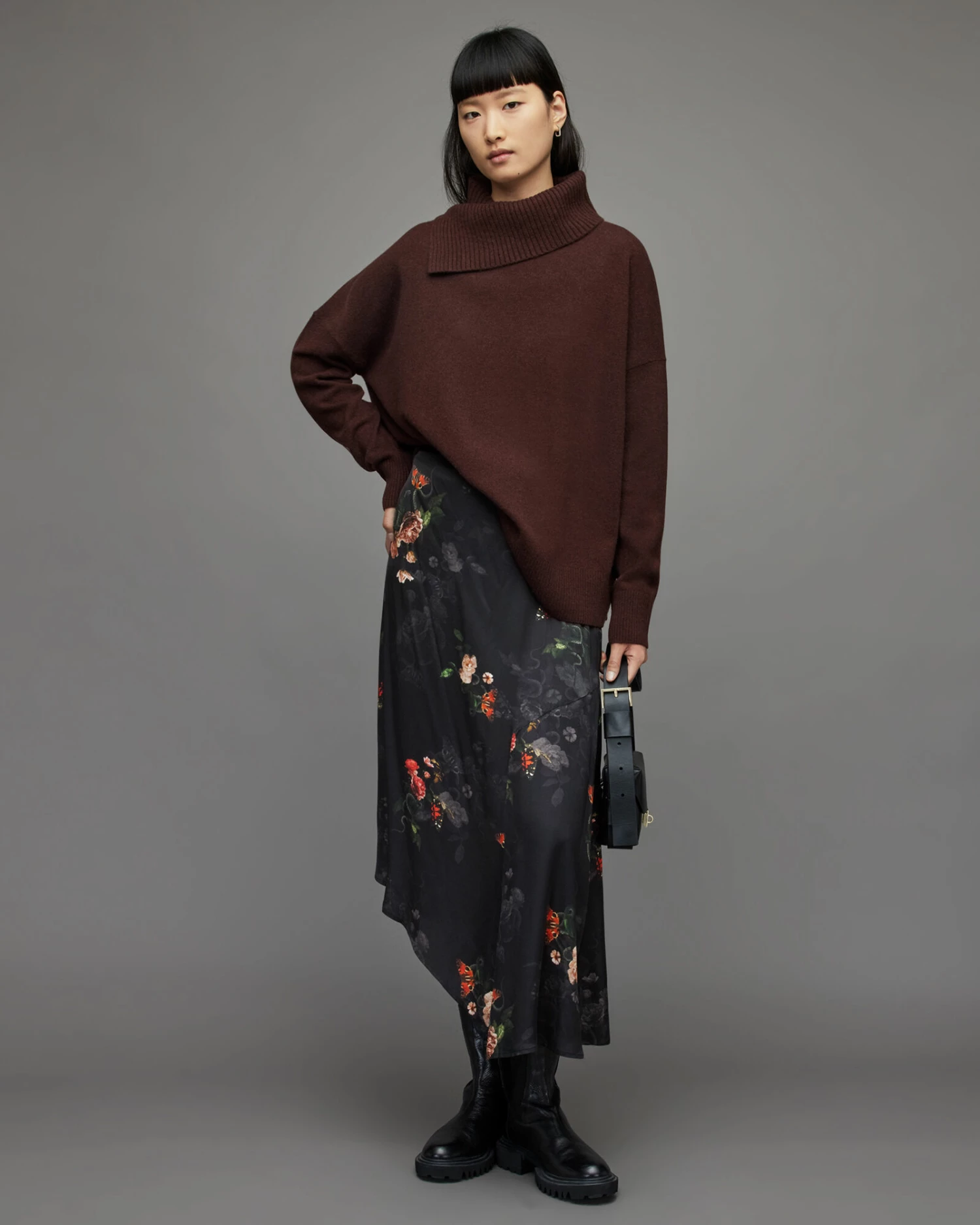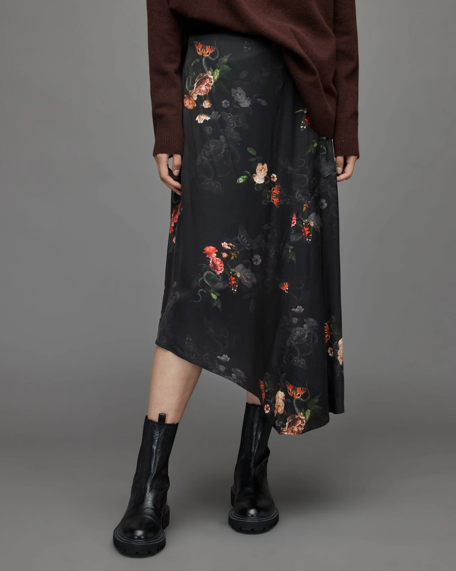 Signature asymmetric hem. The Ani Nancy Skirt is an essential. Cut on the bias, it’s got a side split and zip closure. Dress up or down, it doesn’t really matter as long as it makes you feel good.