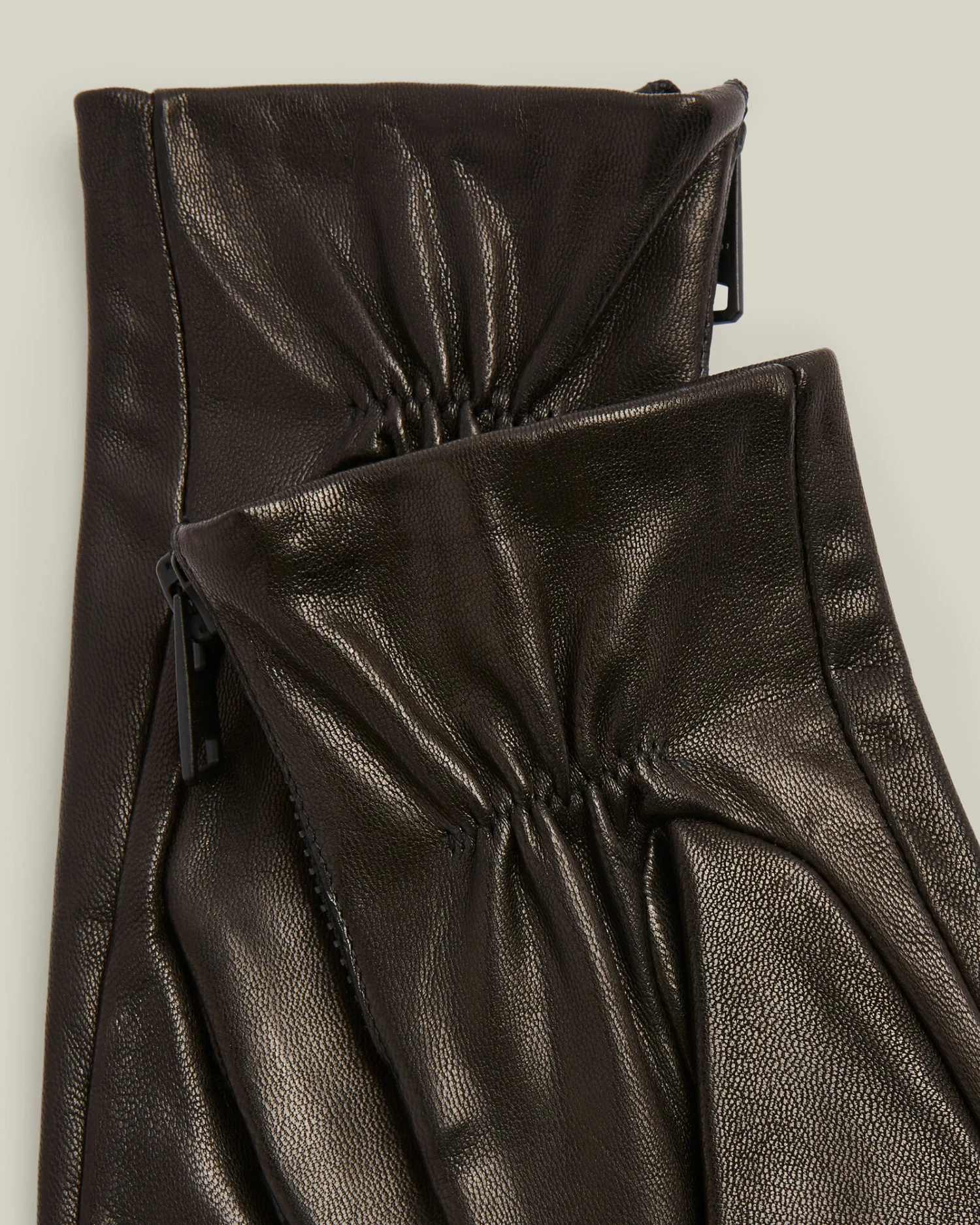 A classic leather style – The Cleo Leather Gloves. With a side zipper on the side, you can adjust the fit. Touch technology in the thumb and index finger allow you to use your phone while still keeping your hands warm.