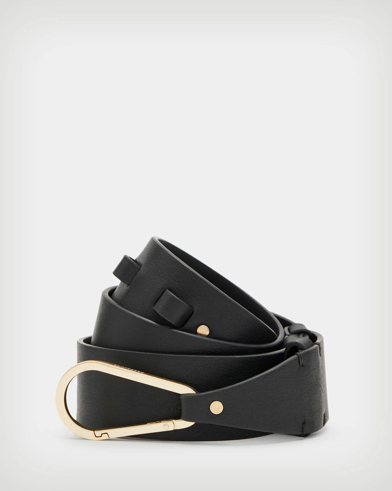 Sleek and modern. Try the Coleen Carabiner Belt. This simple design is completed with a carabiner buckle – something a little different.