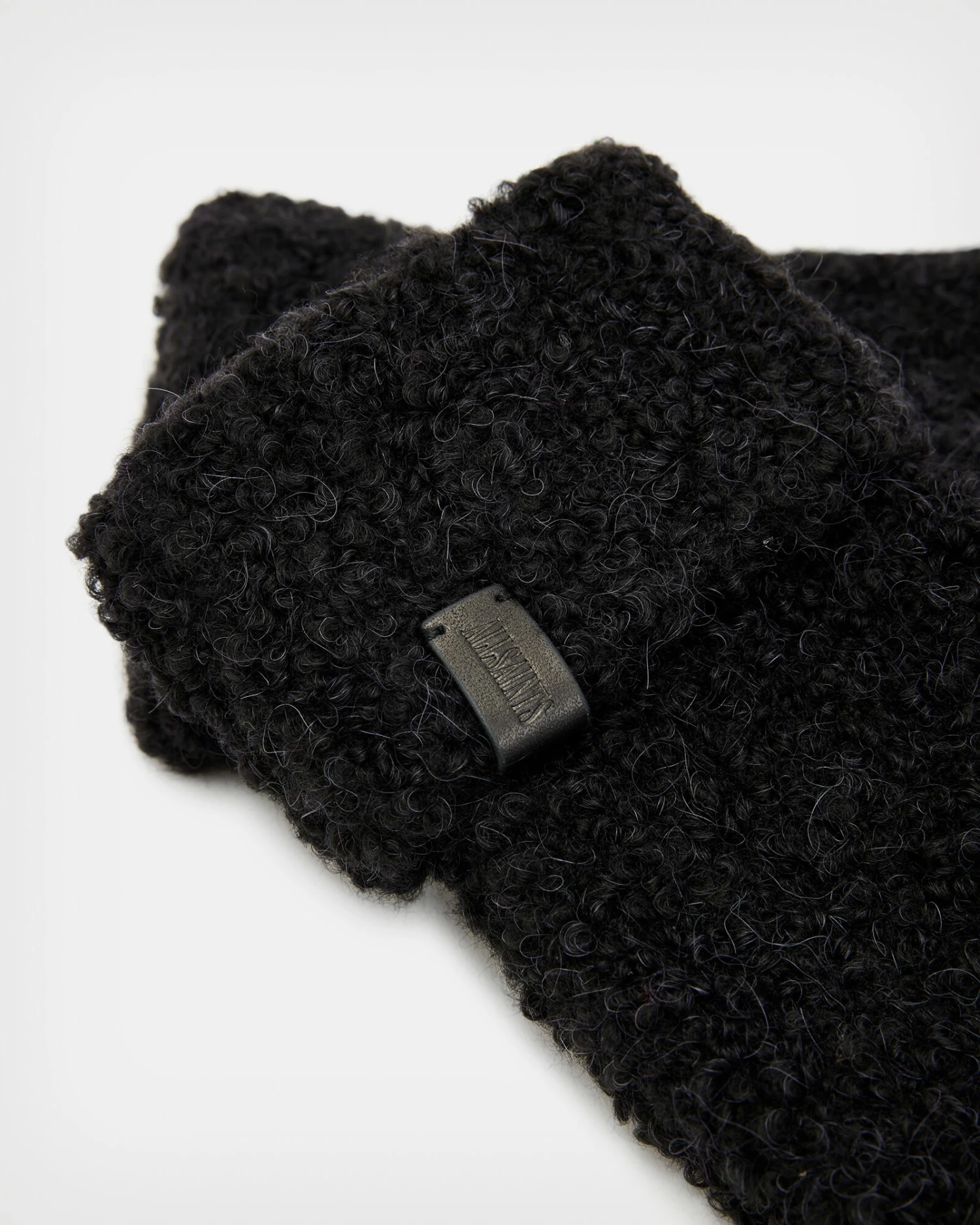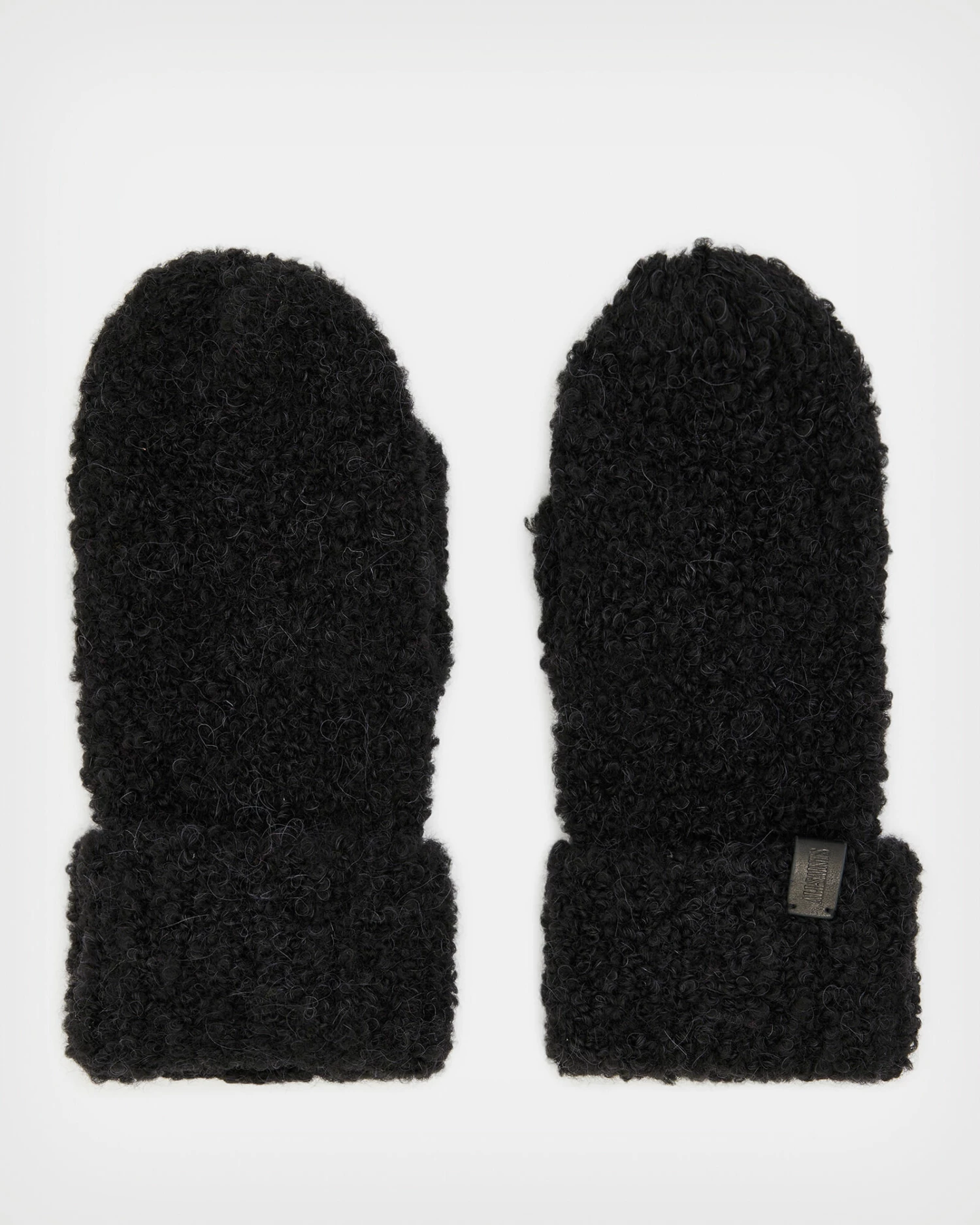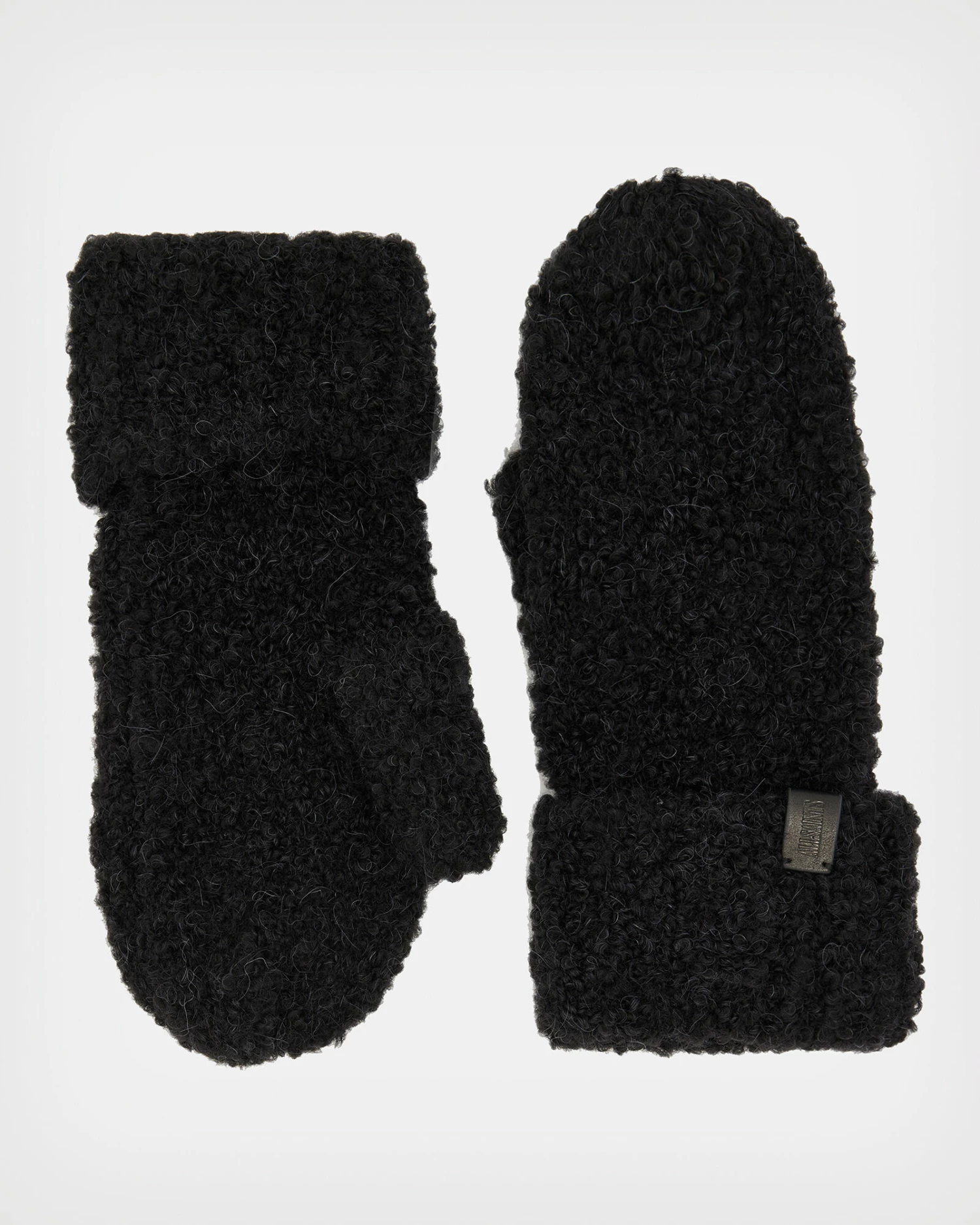 The Darby Mittens will keep you warm. Crafted from a soft, fluffy fabric with a fold over cuff. There’s a small leather tab embossed with our AllSaints signature – take a look.