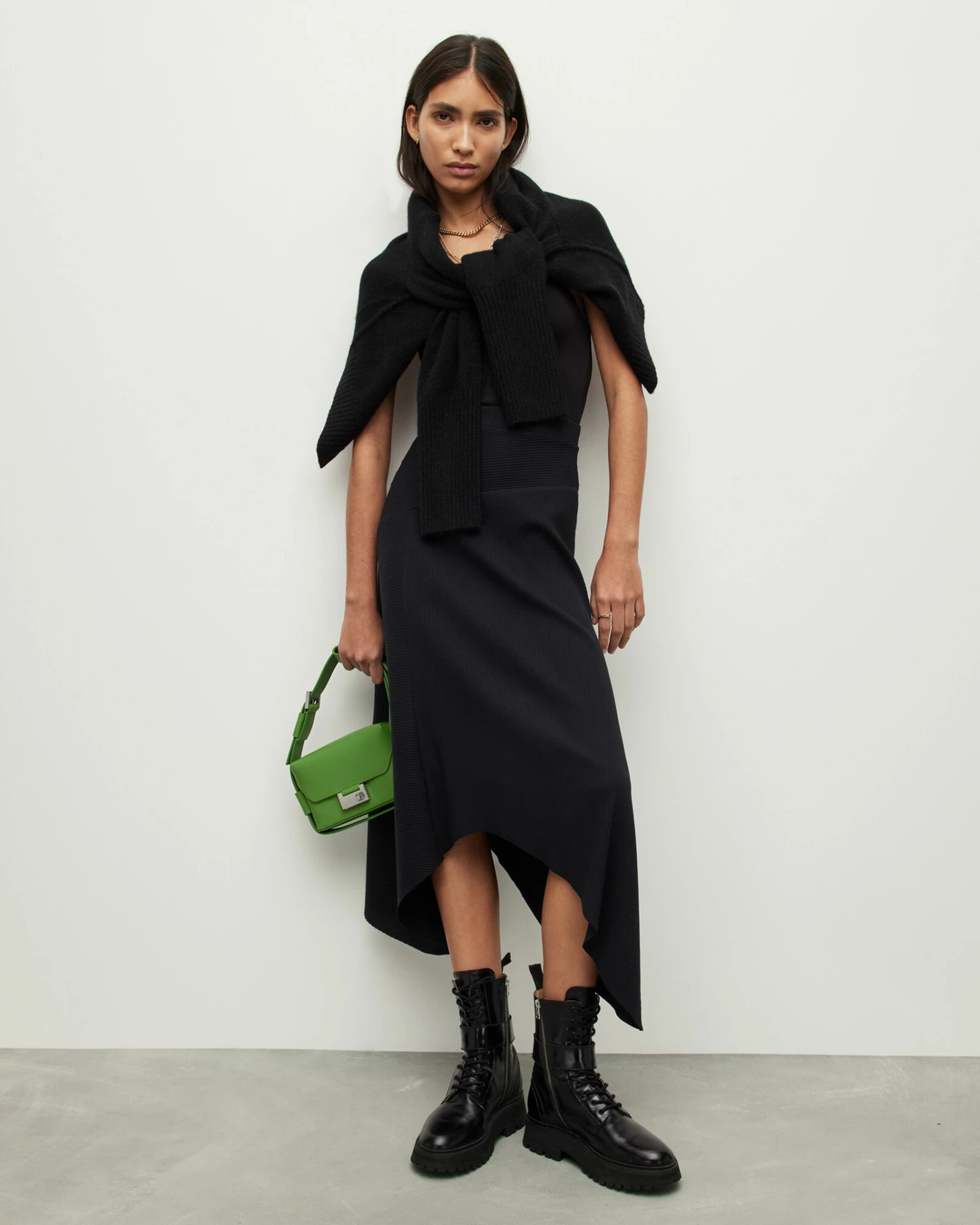 The Gia Skirt – it’s a simple go-to piece. Cotton blend fabric, ribbed texture. With an asymmetric floaty hem – that’s our signature.