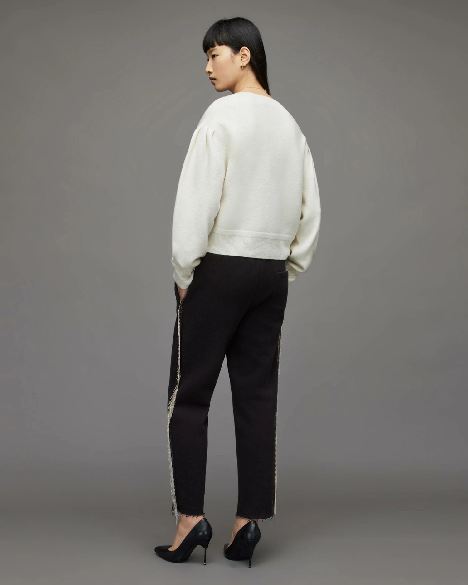 A welcomed update to loungewear. Mid-rise with a tapered leg and chain detaling down the sides. The Giselle Sweatpants – they give a little extra.