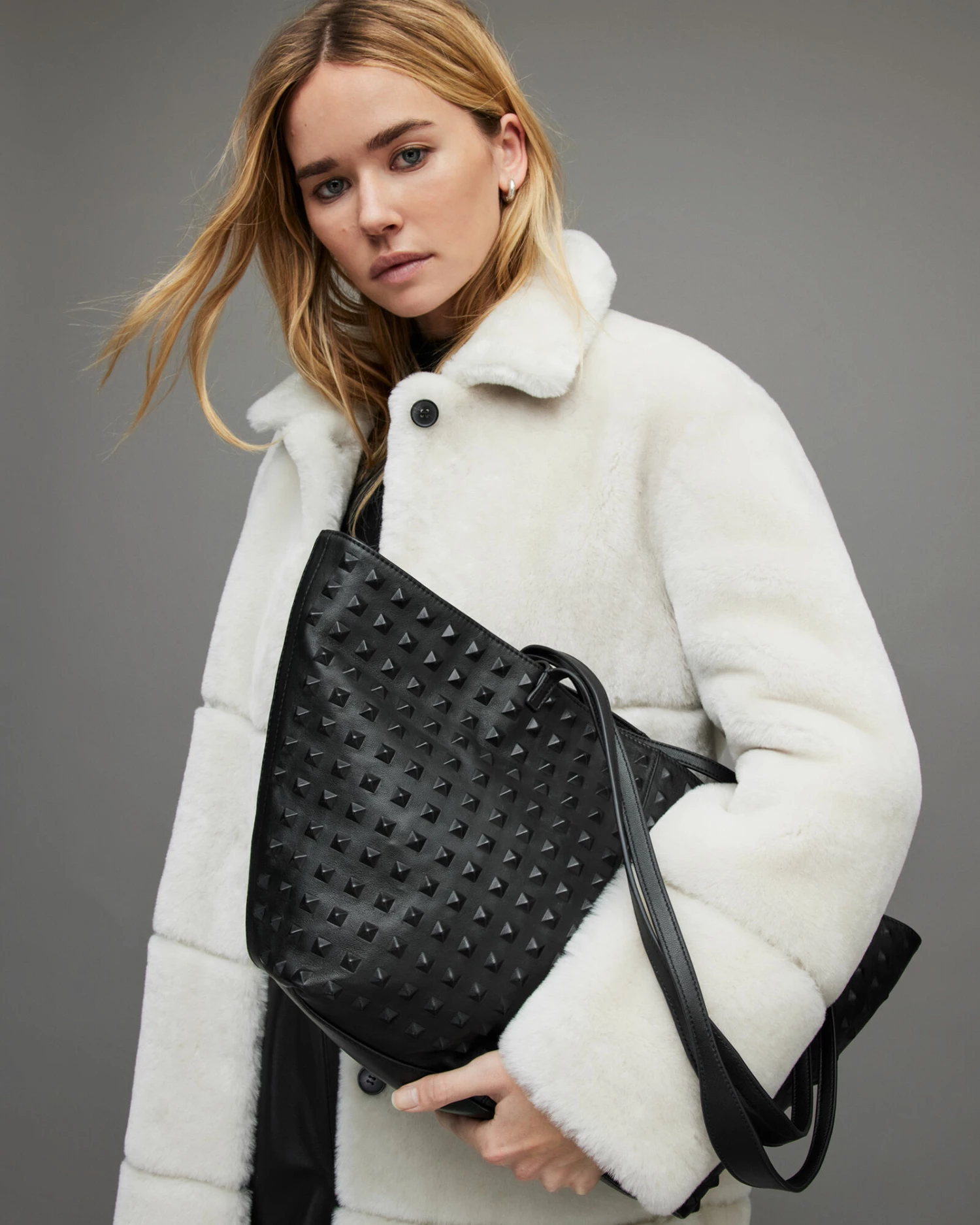 Grab it and go. The Hannah Tote is now studded. Dual strap and an internal zip pouch – versatility that looks good.