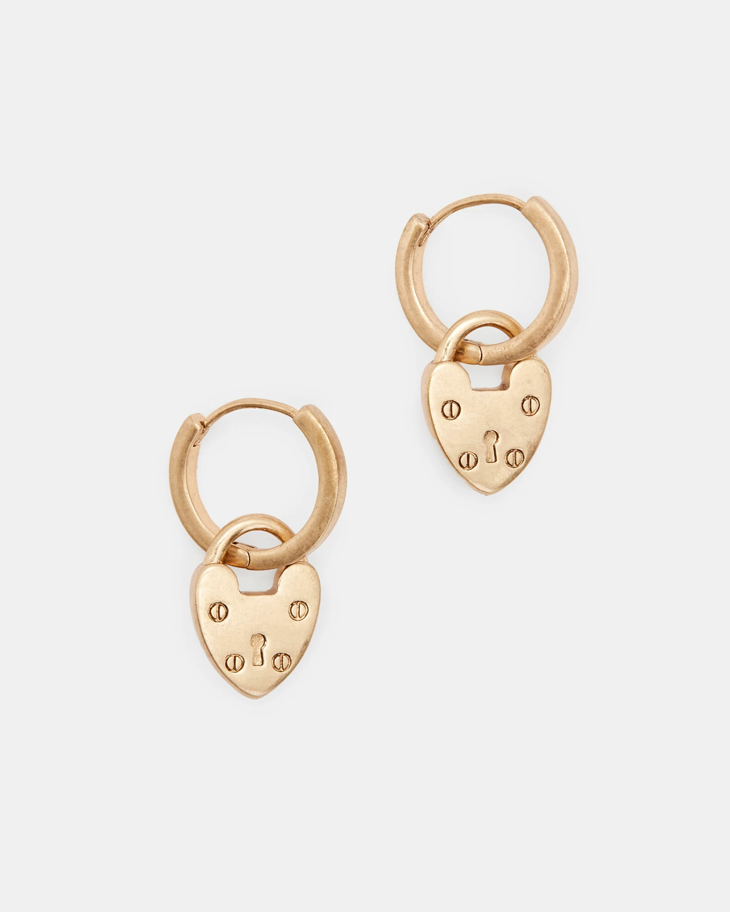 Our heart’s in the right place. A gold-tone pendants with our signature engraved. The Heart Lock Hoops are an easy addition – add them to your rotation.