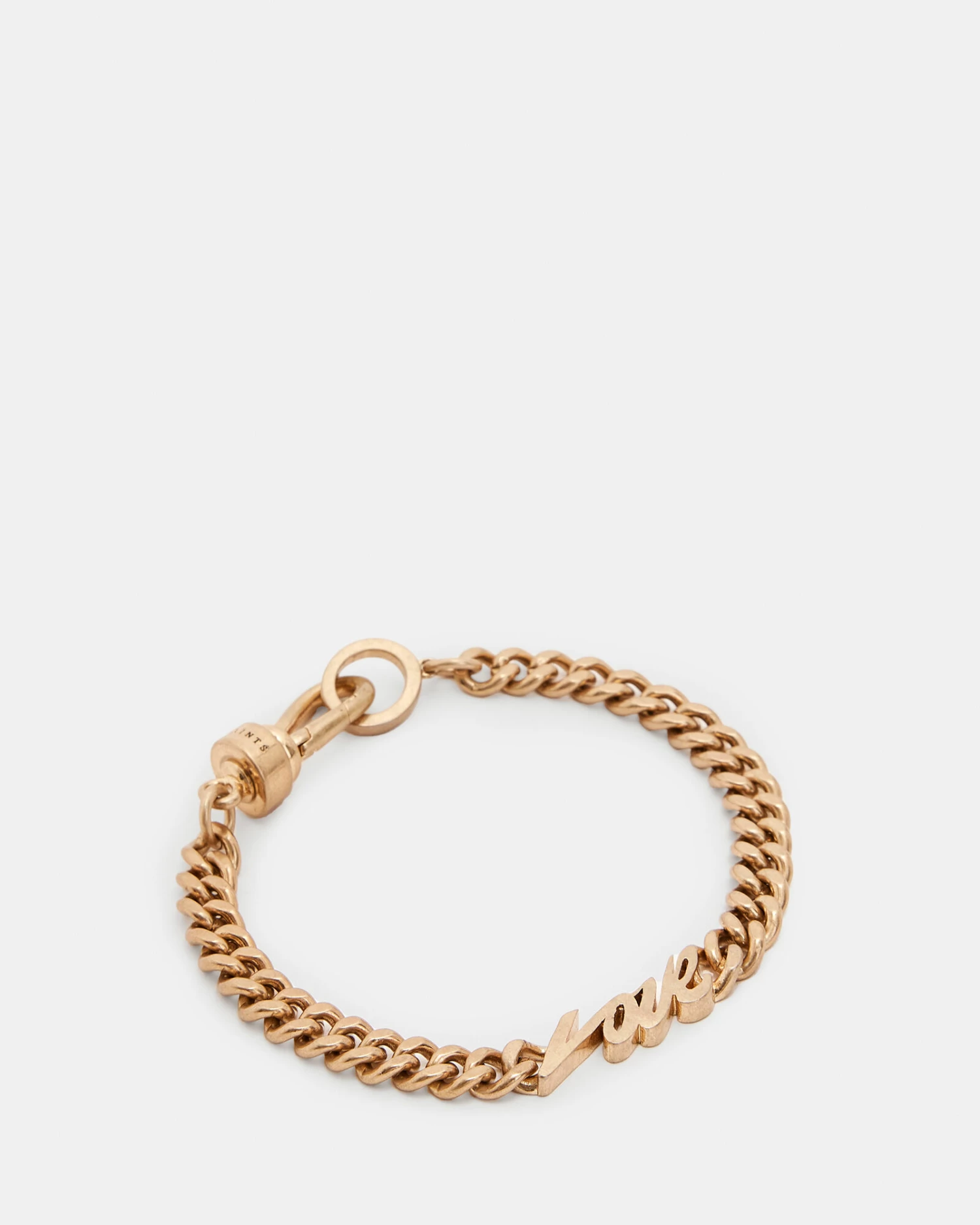 Love – say it out loud. A classic curb chain with our Love Script added in. We’re wearing it all the time.