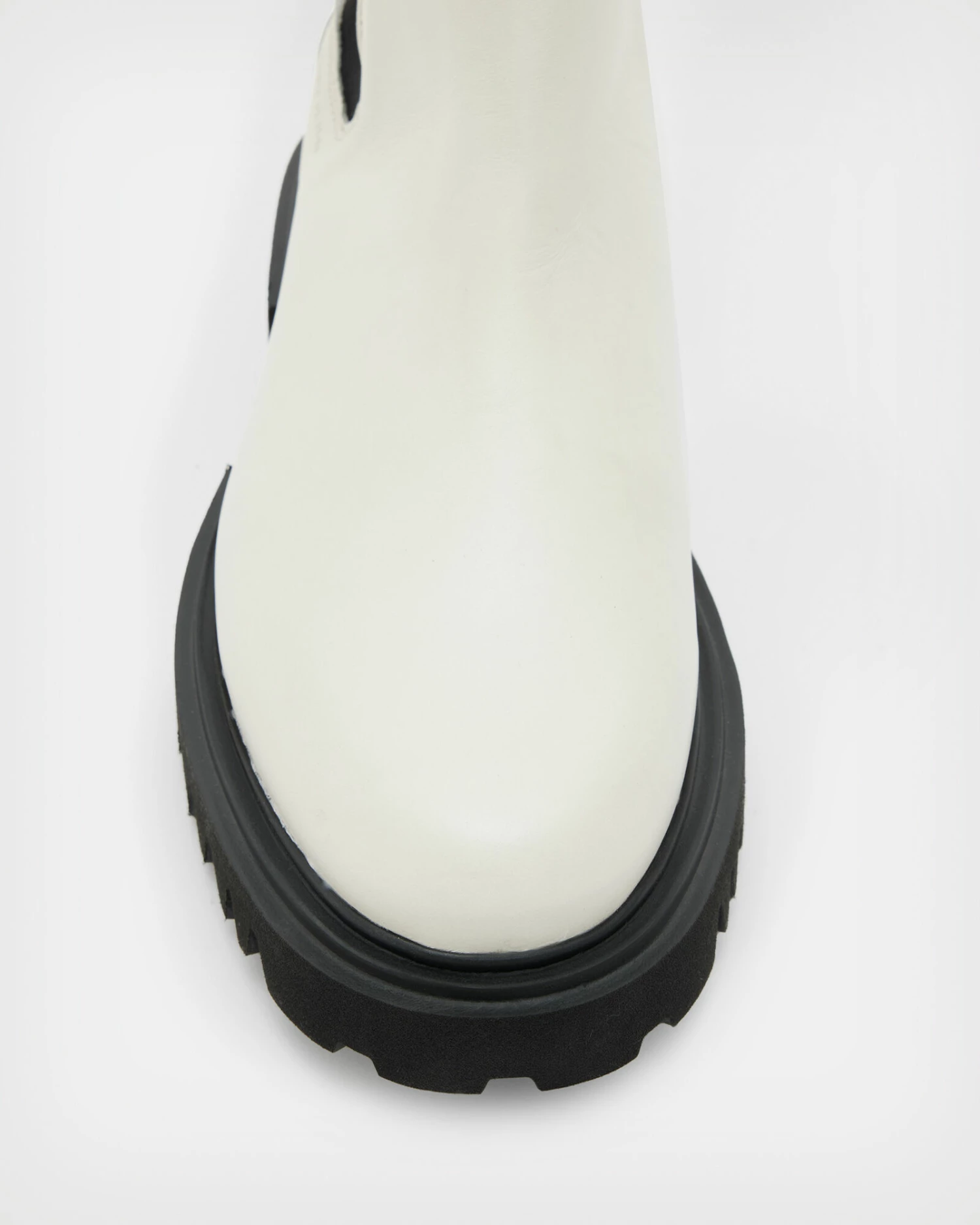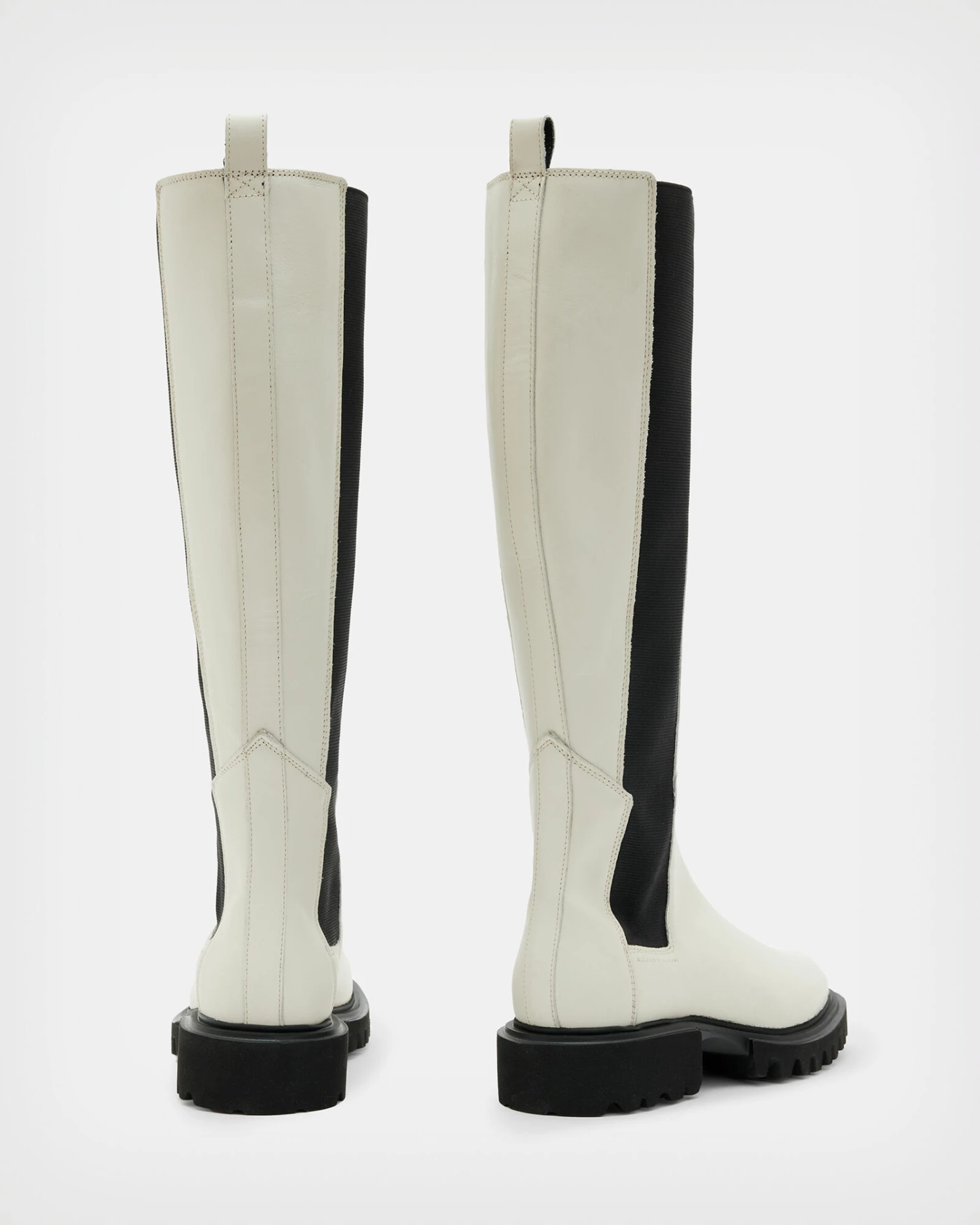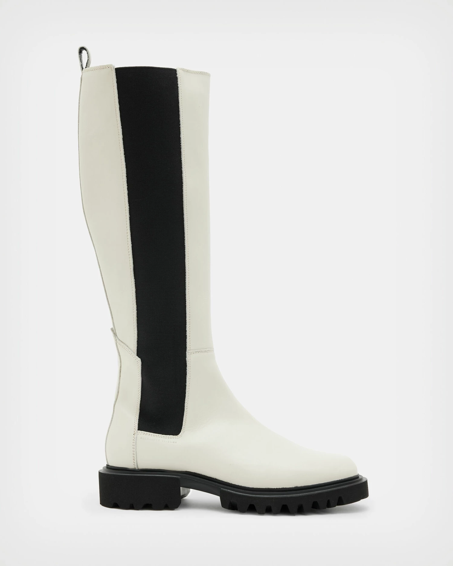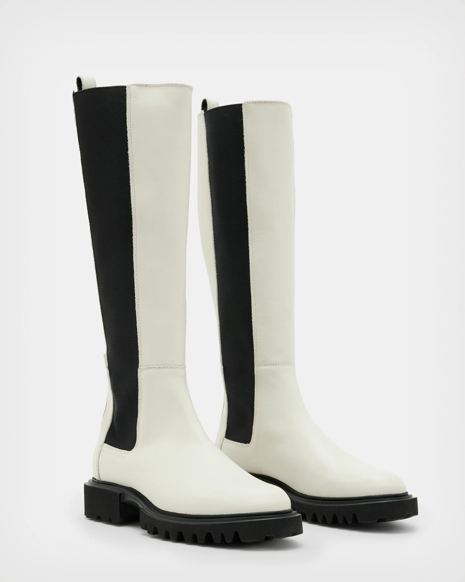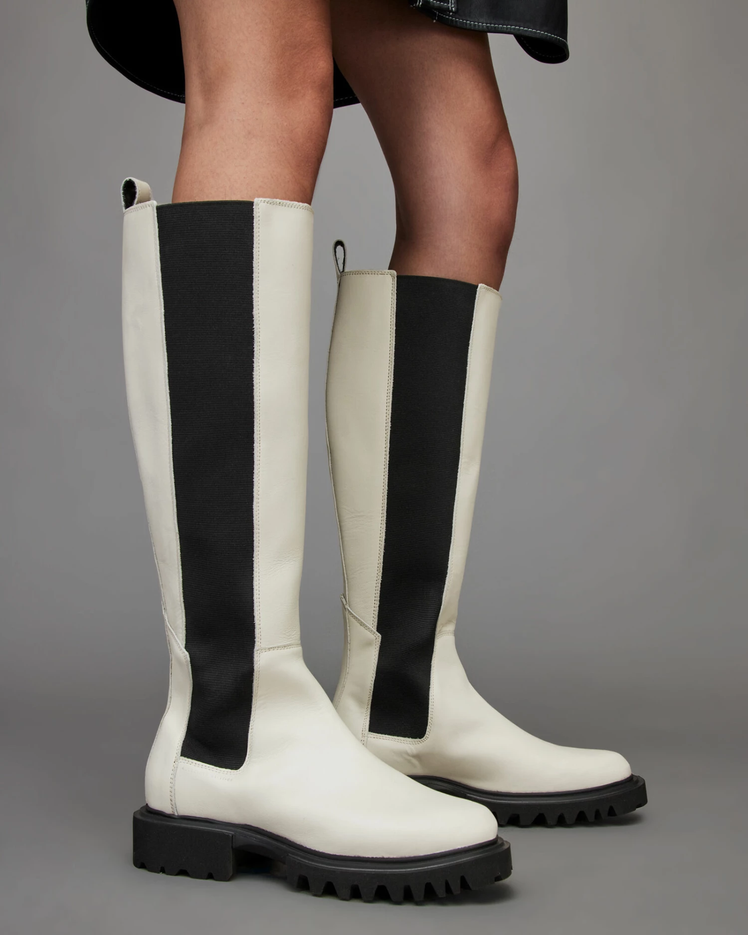 Stand tall in the Maeve Boots. Crafted from leather, in a knee length silhouette. With an elastic closure, they slip on and off with ease. The sole is thick and chunky – a new season essential.