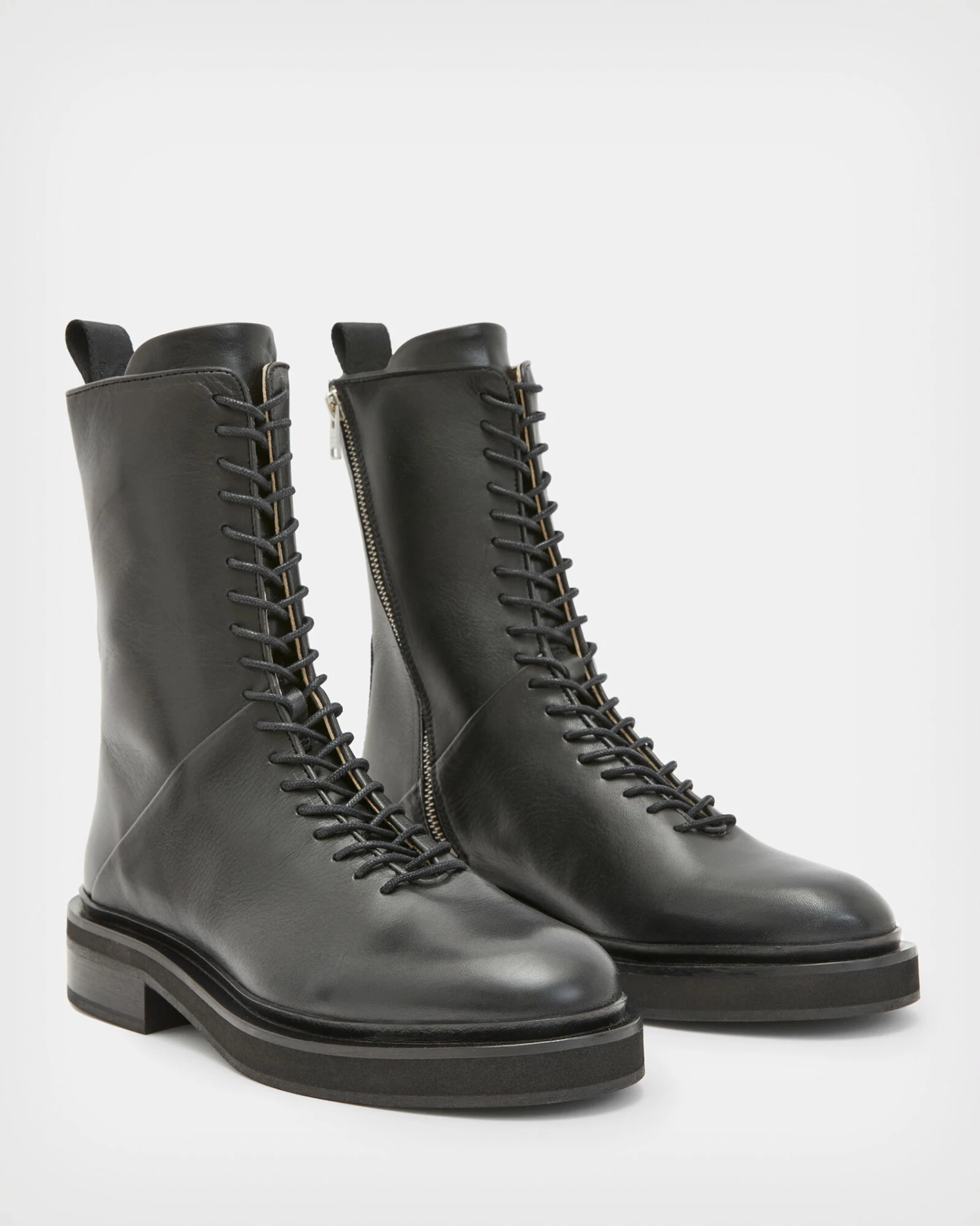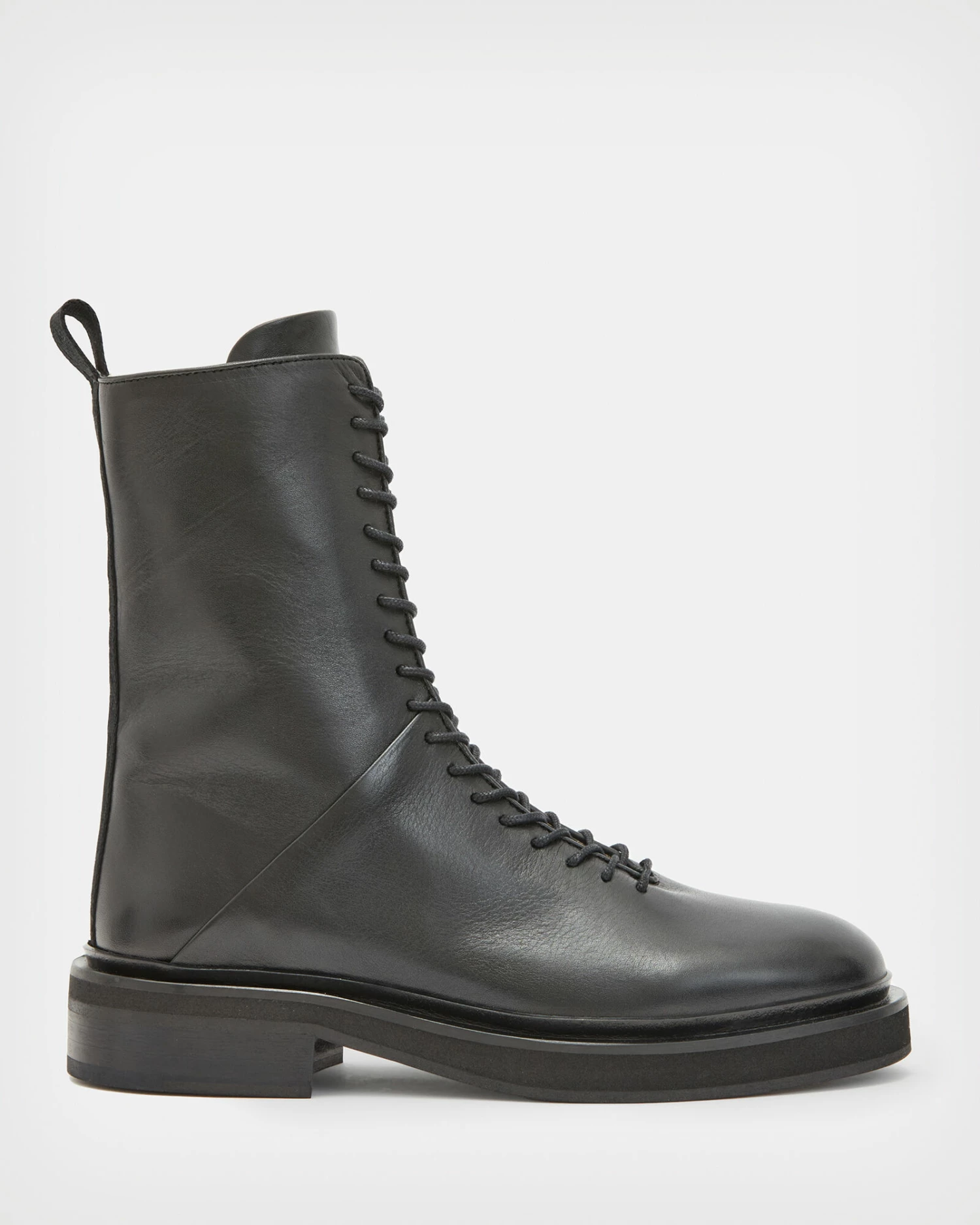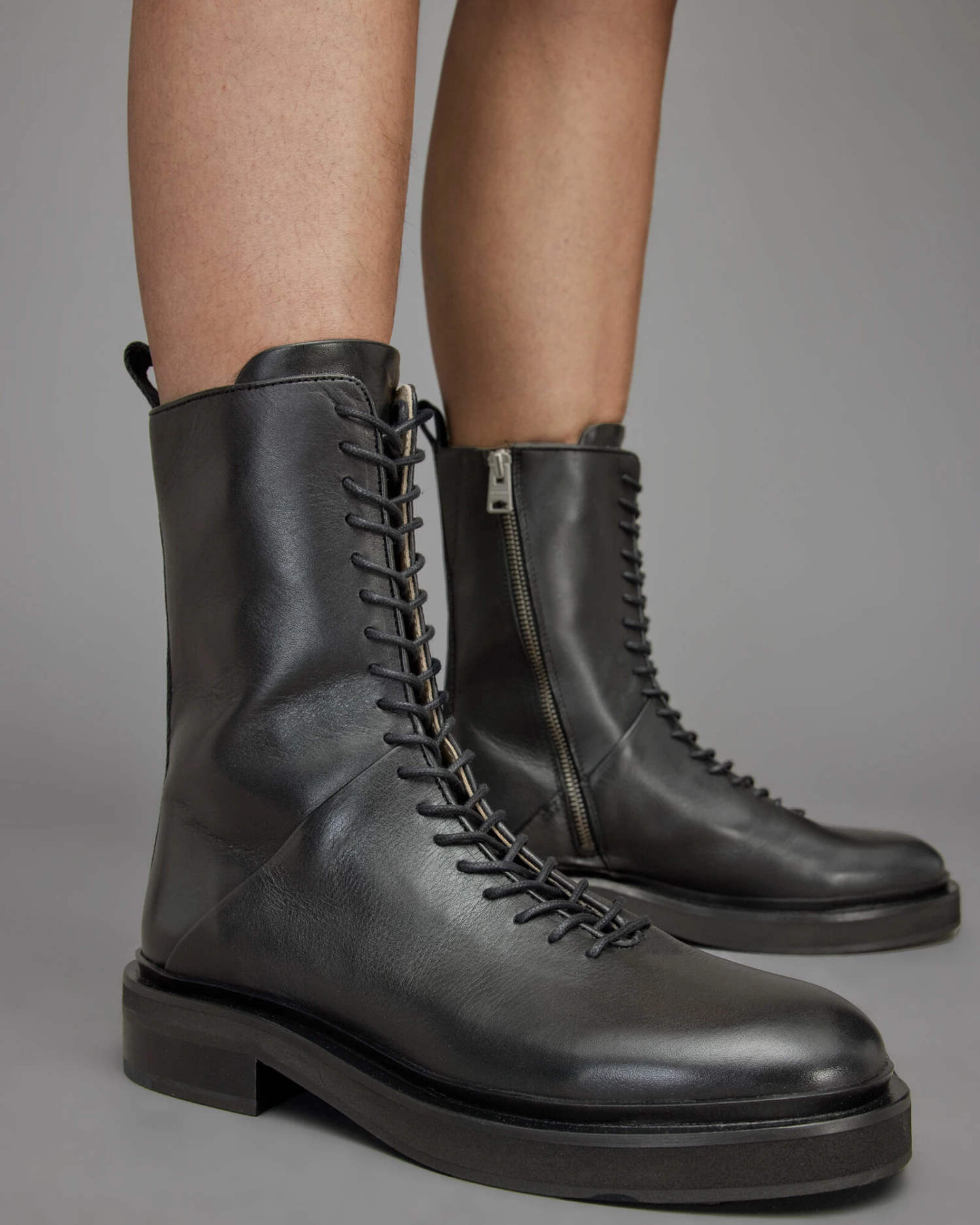 Military styling with a minimal feel. Crafted from lightly glossed leather, this lace up style has a side zip too. With a discreet elastic gusset and pull tab for easy wear. The Mina Boots are made for everyday.
