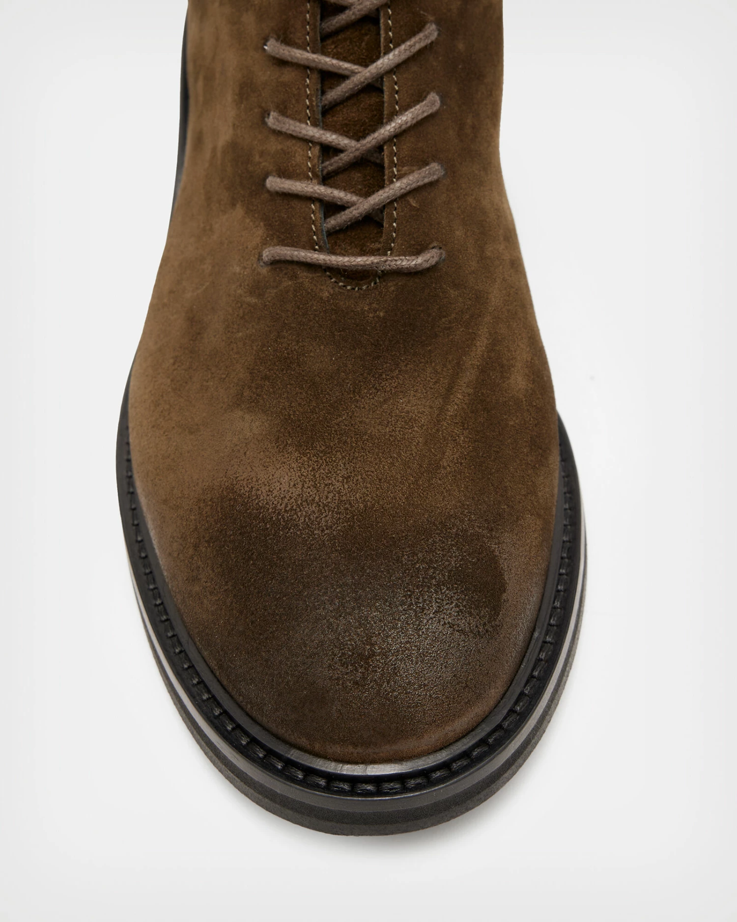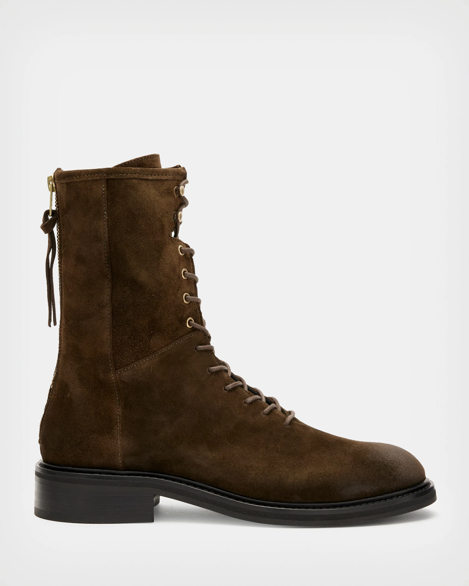 Combat boots. They look great with our dresses. The Misty Boots are crafted from suede with contrasting laces and a metal zip. Try them on.