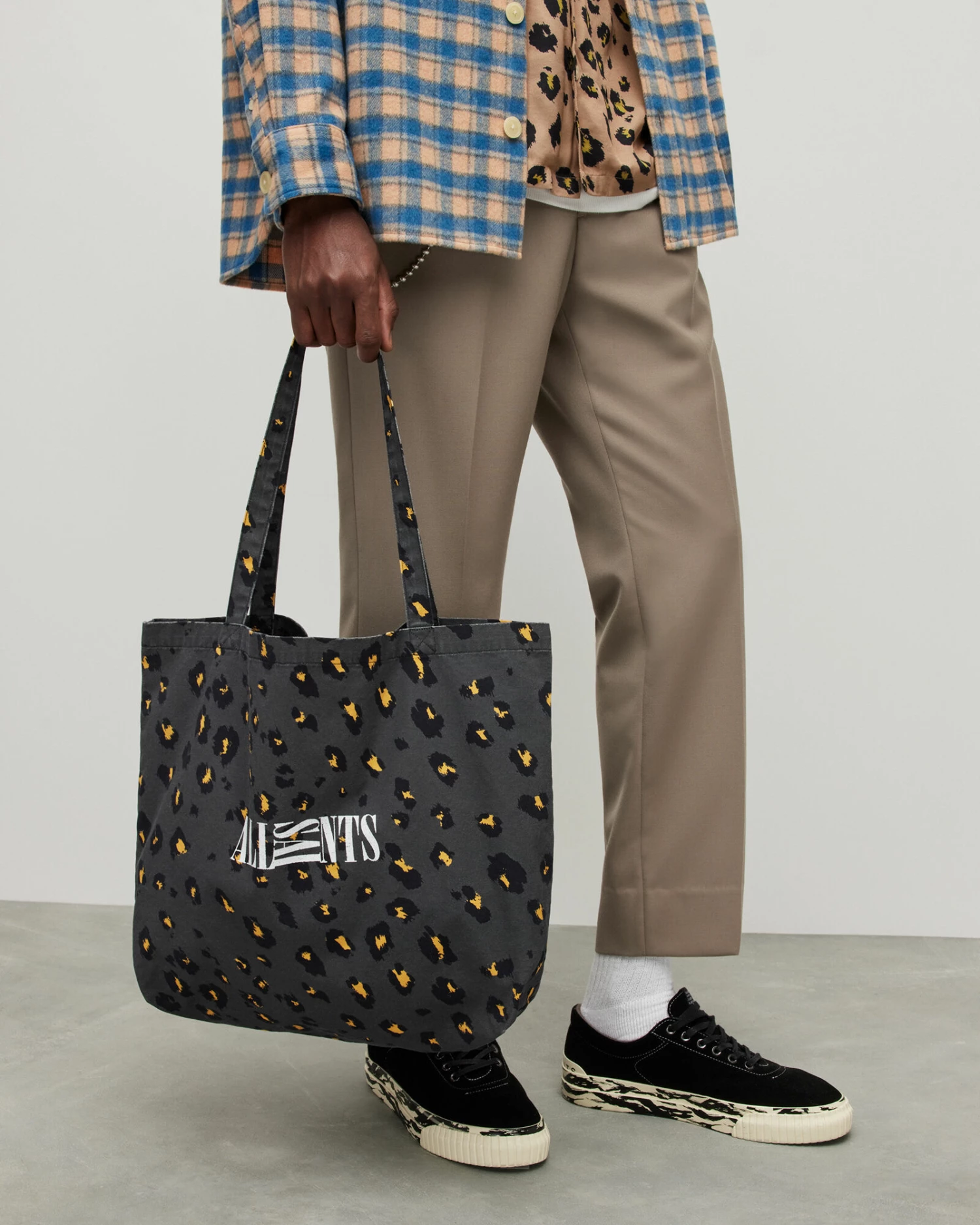 Keep everything you need close by in the Oppose Shopper Bag. Crafted from cotton and shaped to a spacious silhouette – it can hold a lot. Our AllSaints signature graphic takes centre stage on a unique leopard print base.