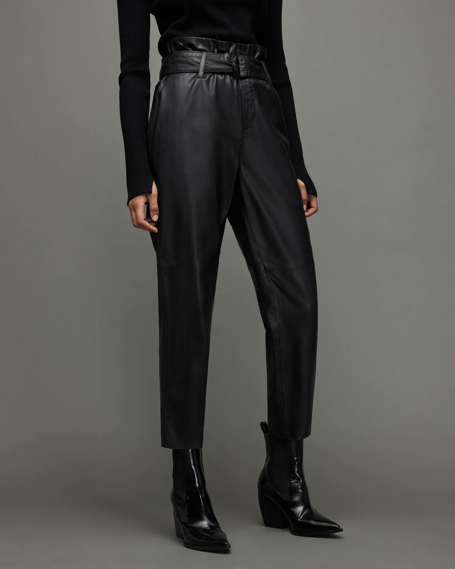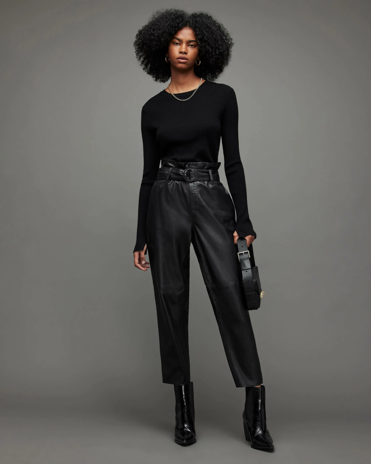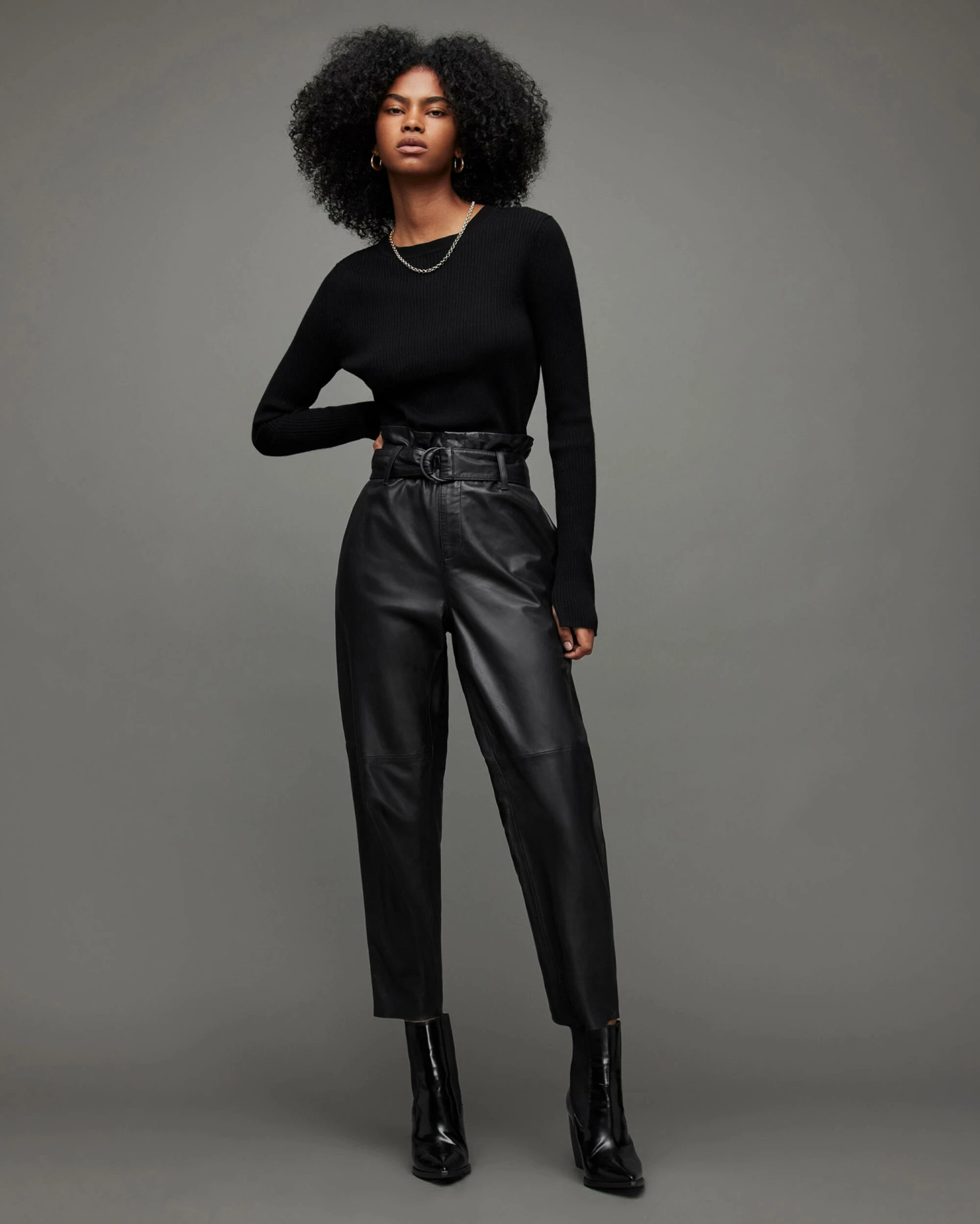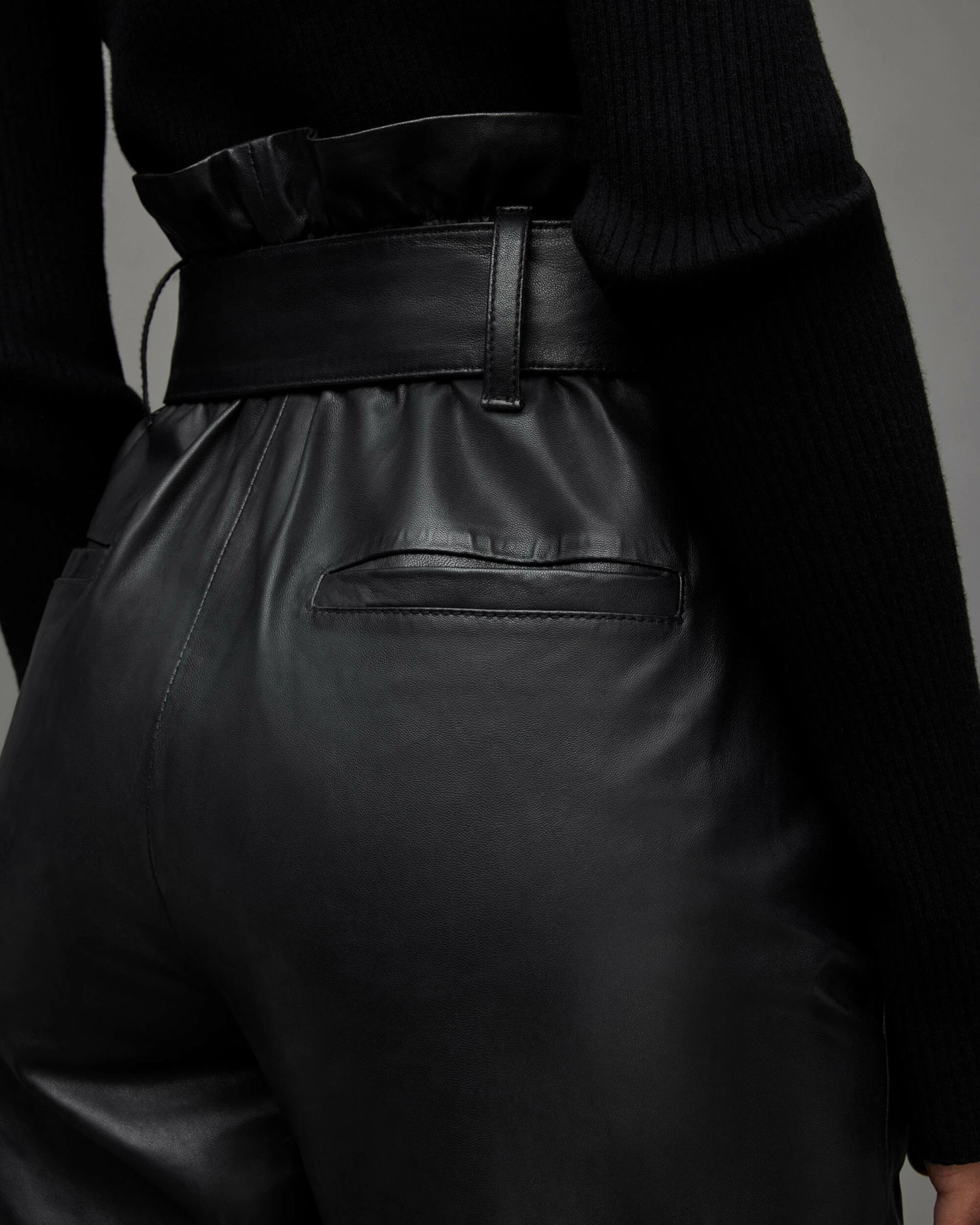 Lightweight leather in a relaxed fit. The Orsen Trousers are a new going out staple. Soft leather constructed to a paperbag silhouette with an elasticated waist and belt detail. Raw cut hems toughen up the aesthetic.