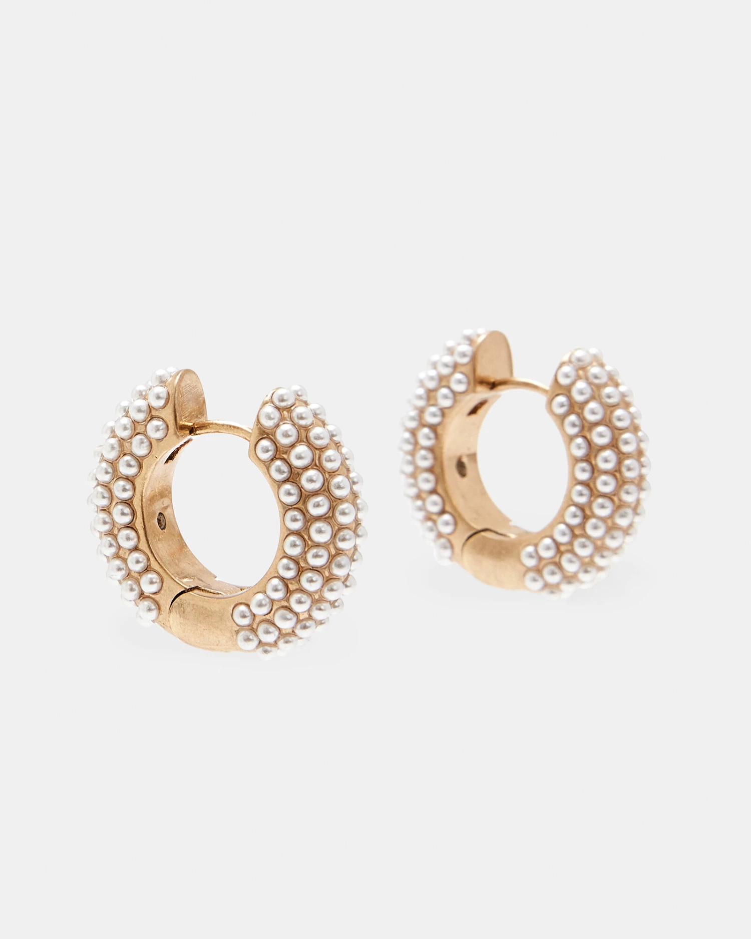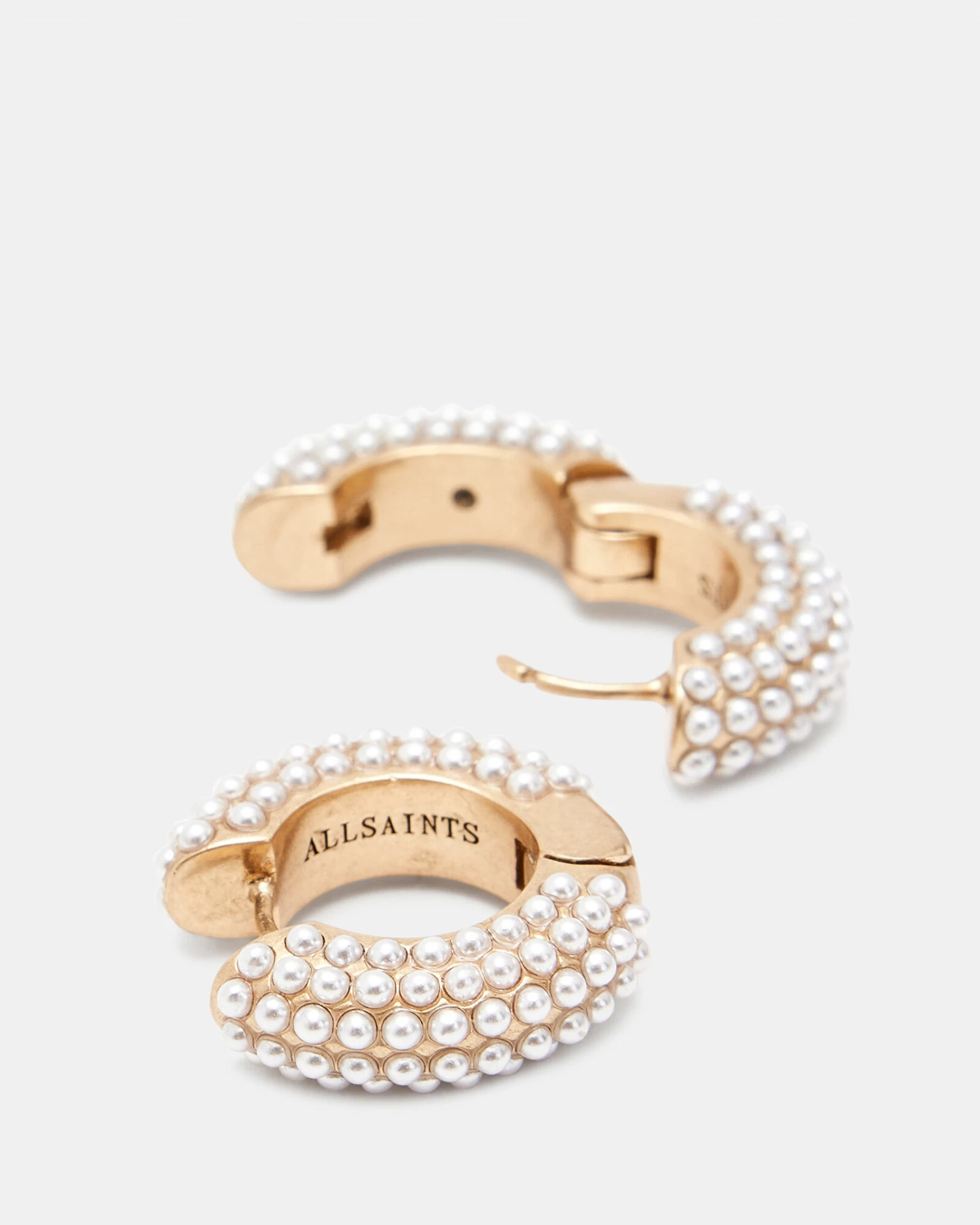 Pearl beads on chunky hoops – these earrings are a must. Style them with confidence for evenings out. Find our signature engraved too.