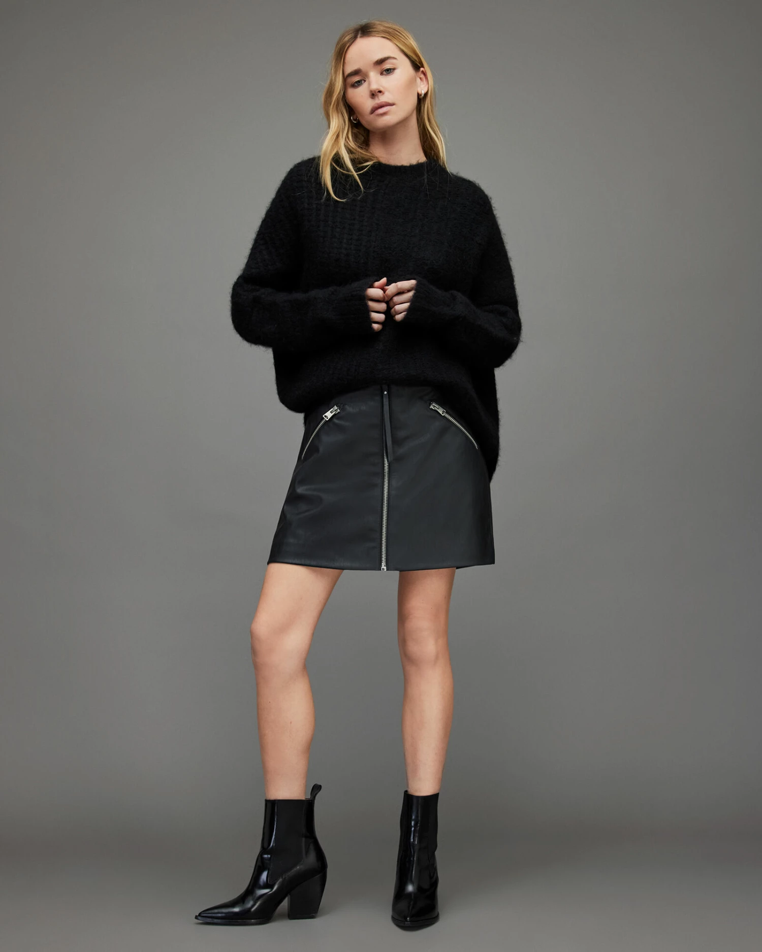 The Piper Skirt is a staple. It zips through the front and features two zip pockets. Pair with boots and your favourite band tee.