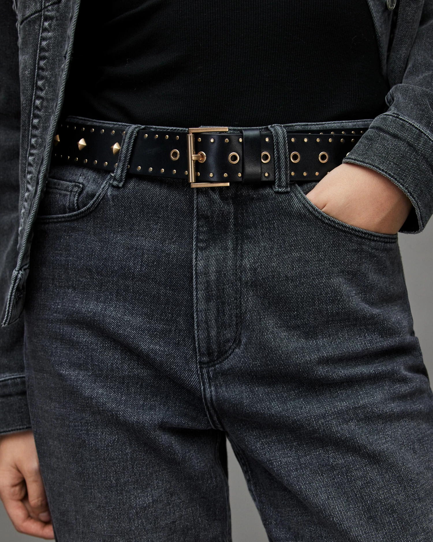 Simple studs. This is the Piper. This classic design with mixed stud detailing. A great addition to your jeans.