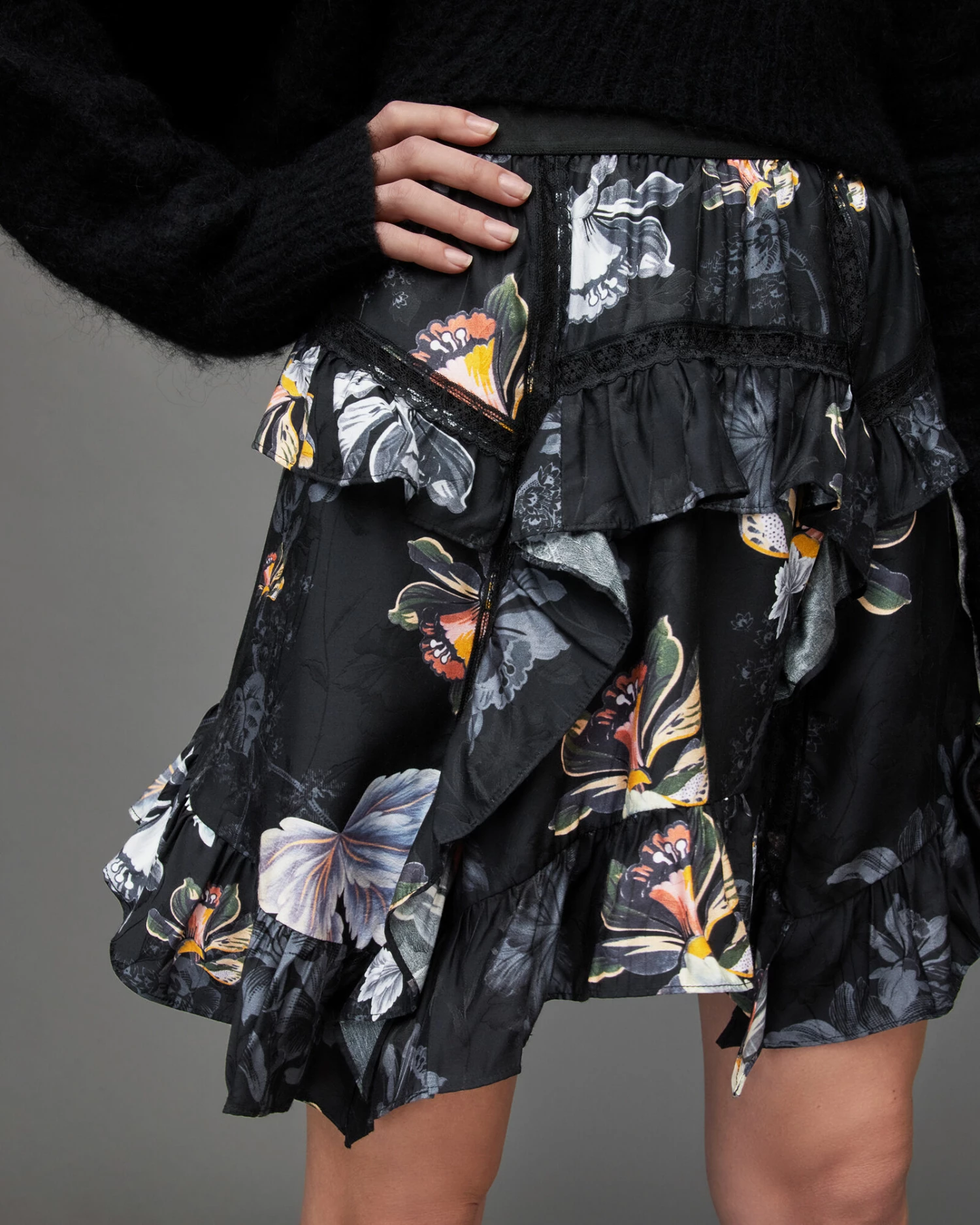 Ruffles and florals. The Reese Lilly Skirt has a playful silhouette. Tuck in a an oversized jumper – a new take on seasonal dressing..