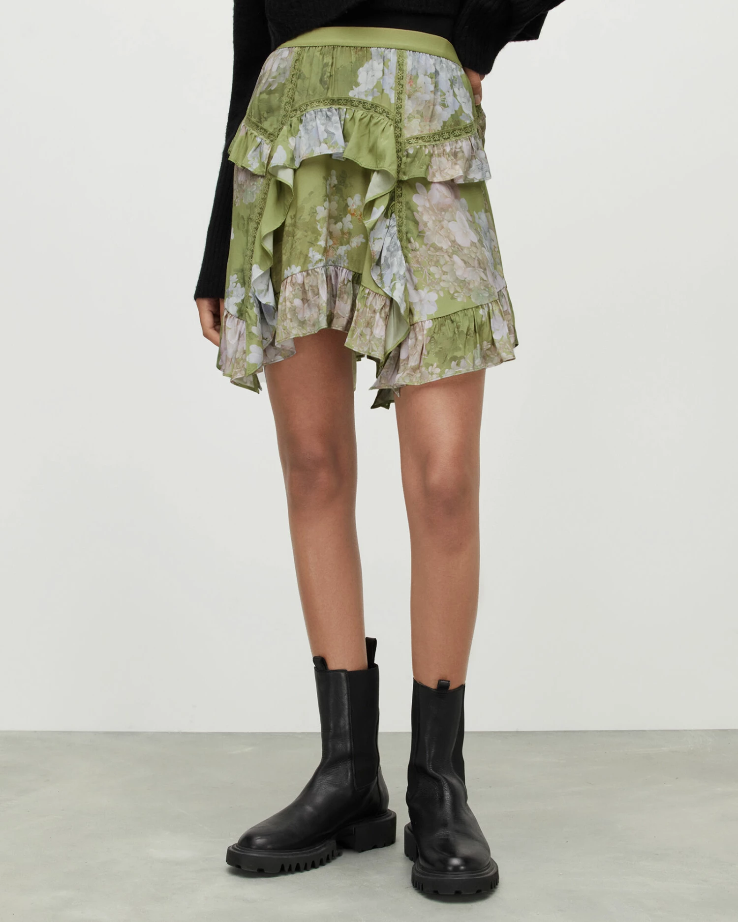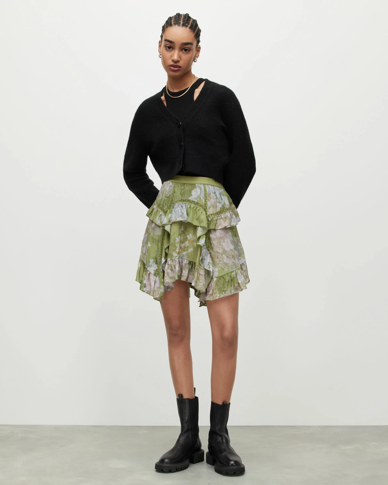 Ruffles and florals. The Reese Lilly Skirt has a playful silhouette. Tuck in a an oversized jumper – a new take on seasonal dressing..