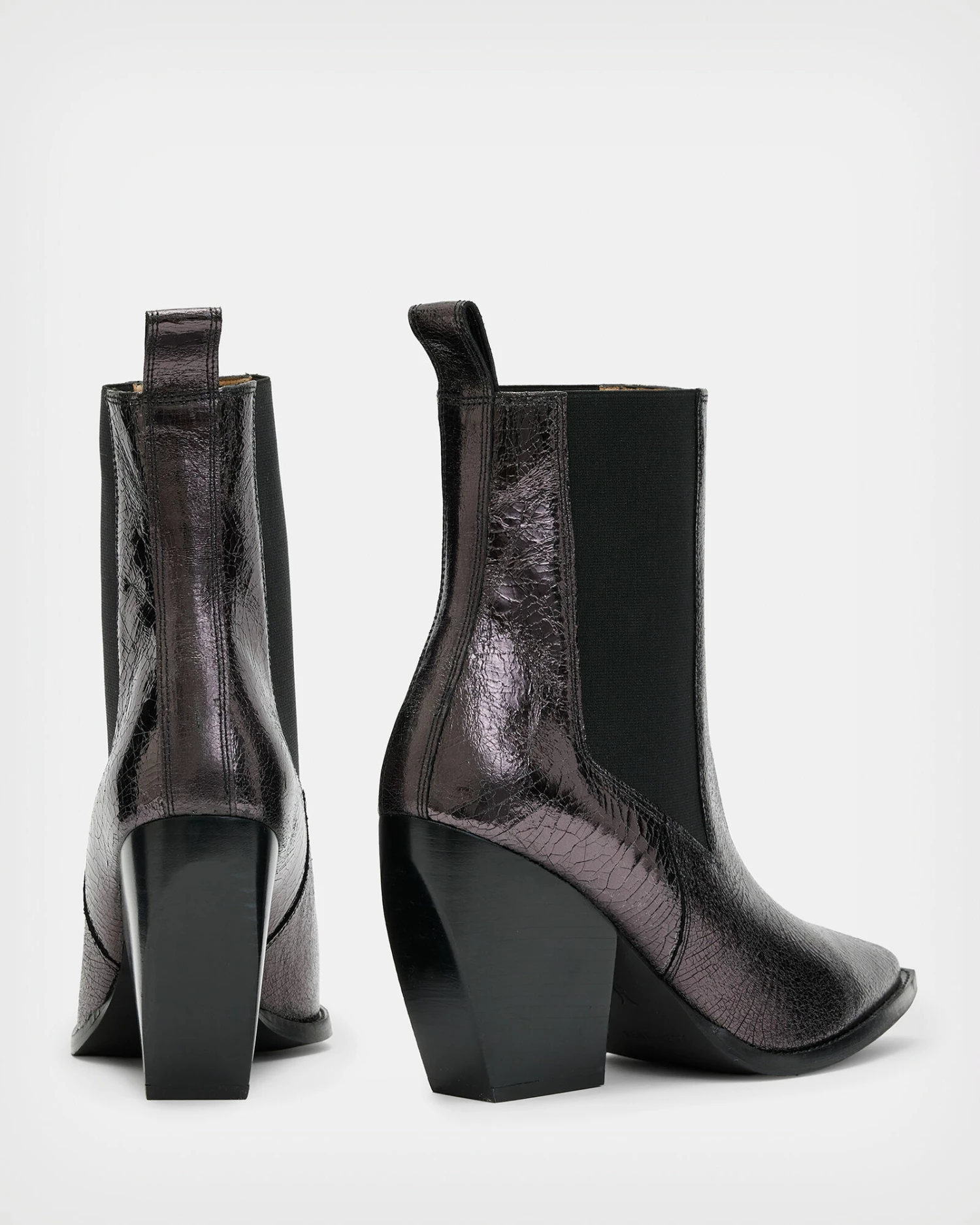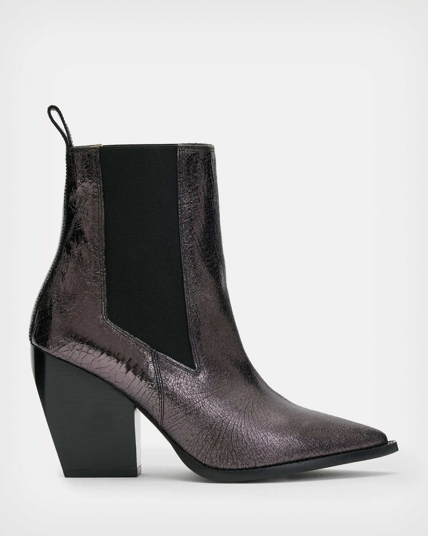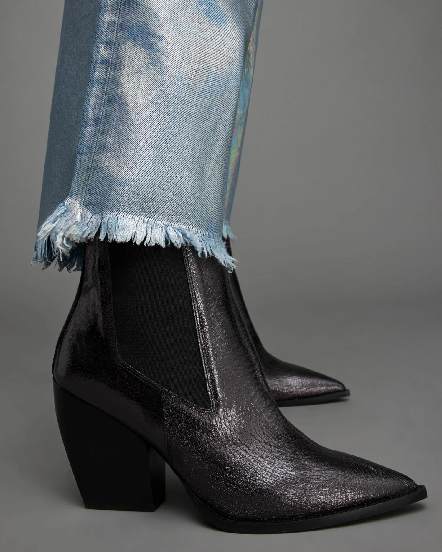 Sophisticated shapes with a classic feel. Meet the Ria Boots. Crafted from textured leather, the pointed silhouette is completed with a chunky heel and elastic panel for ease. Dress them up or down – that’s up to you.