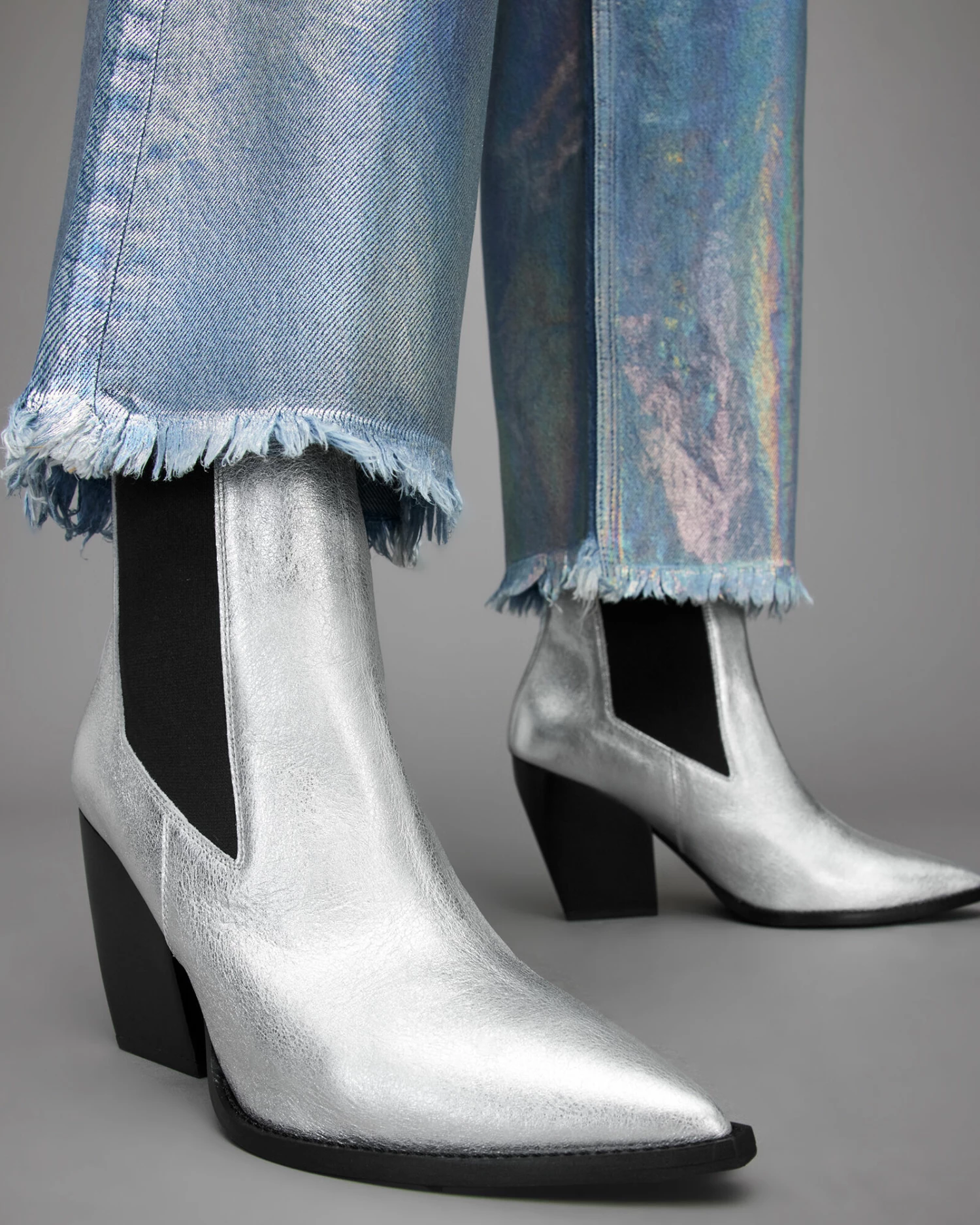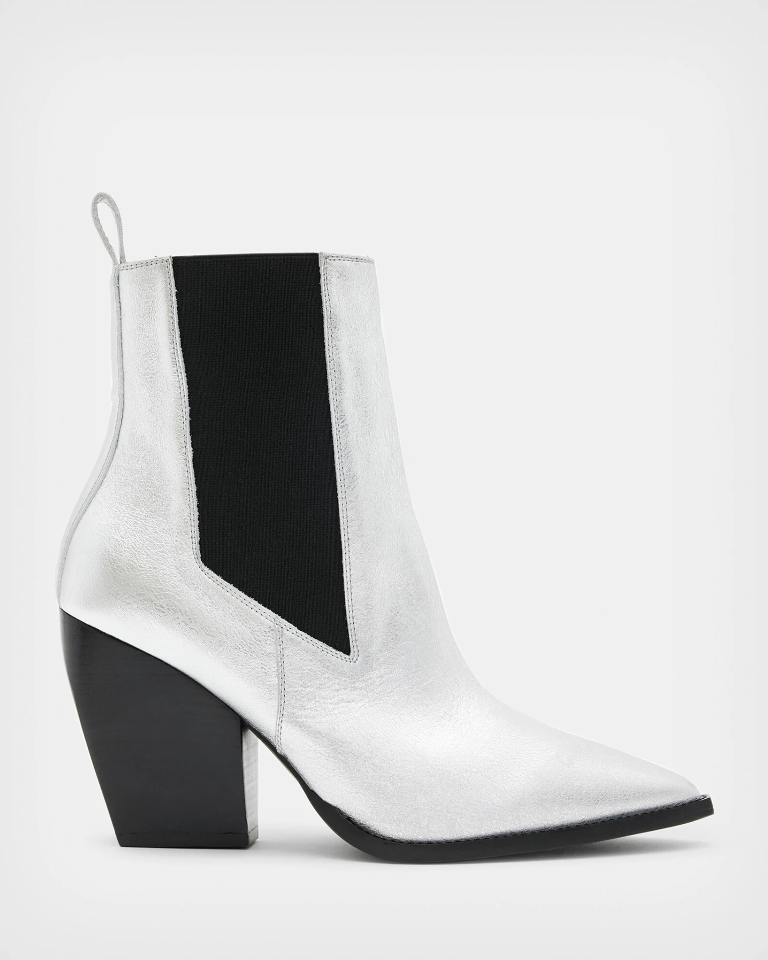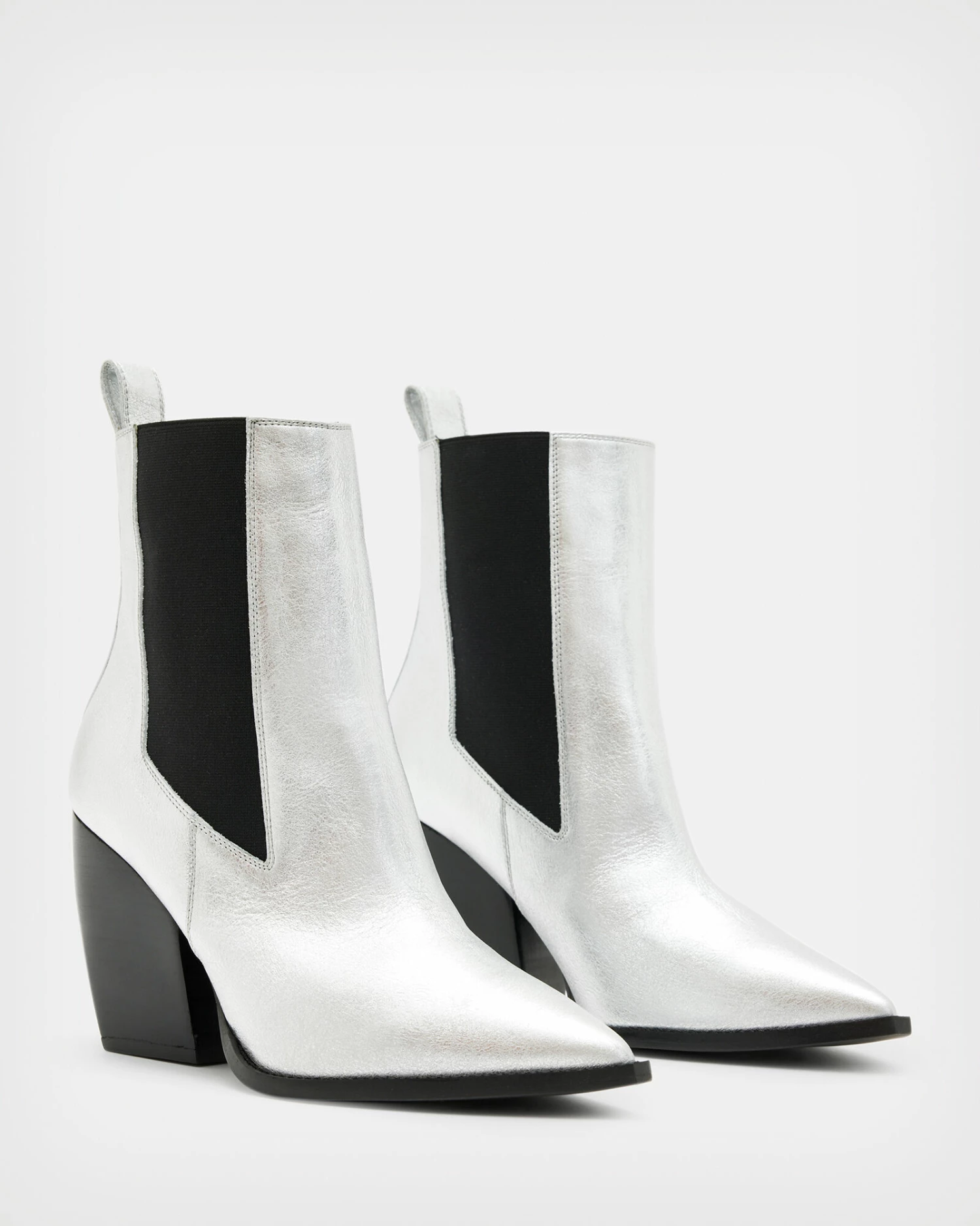 Sophisticated shapes with a classic feel. Meet the Ria Boots. Crafted from metallic leather, the pointed silhouette is completed with a chunky heel and elastic panel for ease. Dress them up or down – that’s up to you.