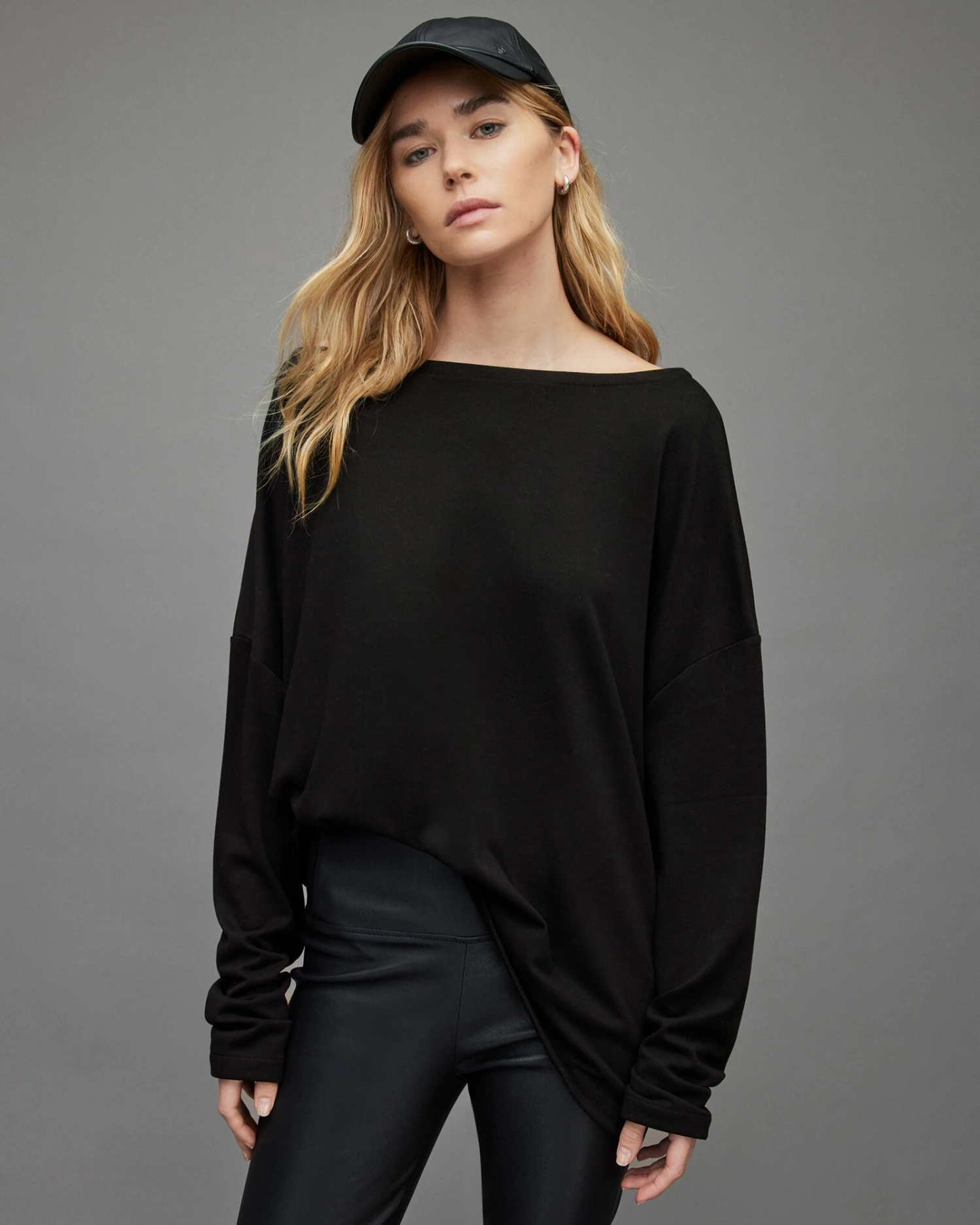 The Rita T-Shirt. Loose and oversized, it’s perfect for layering. Crafted from a washed fabric, for ultimate comfort. Style it off-the-shoulder, if you like.