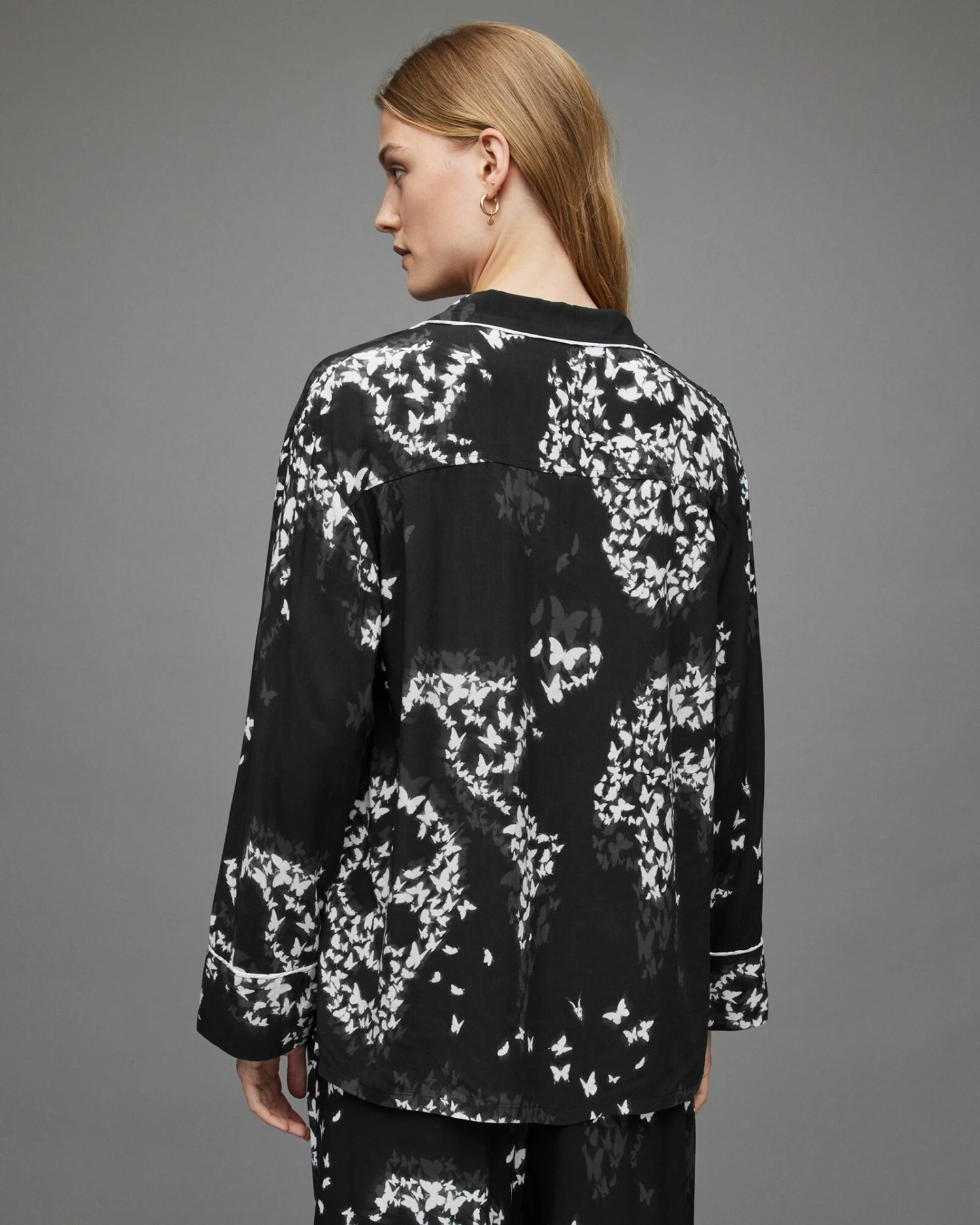 Sleepwear with sweet dreams guaranteed. The Safi Orsino Pyjama Shirt. It has a relaxed feel and is covered with our new monochromatic print. Piped around the edges for the finishing touch.
