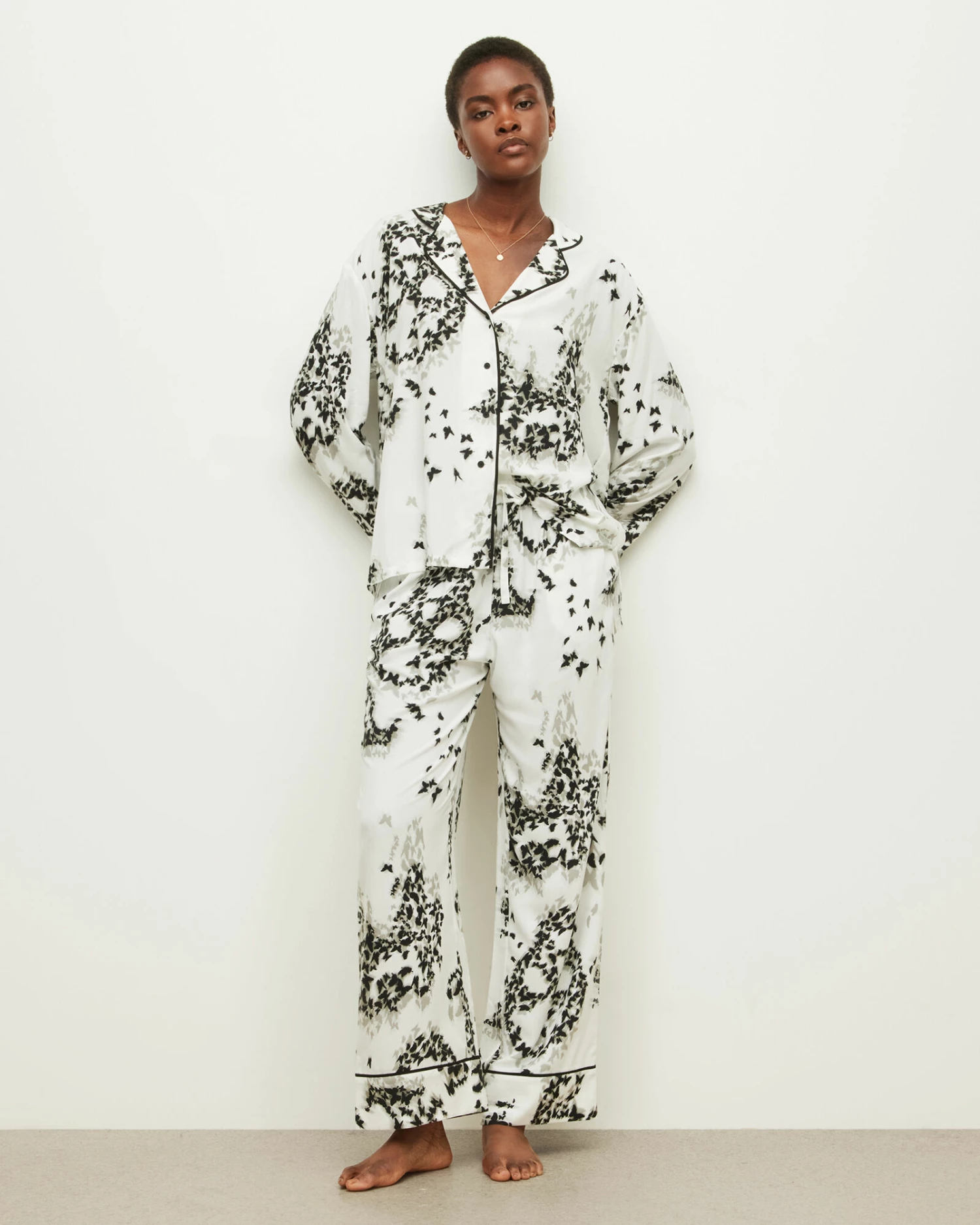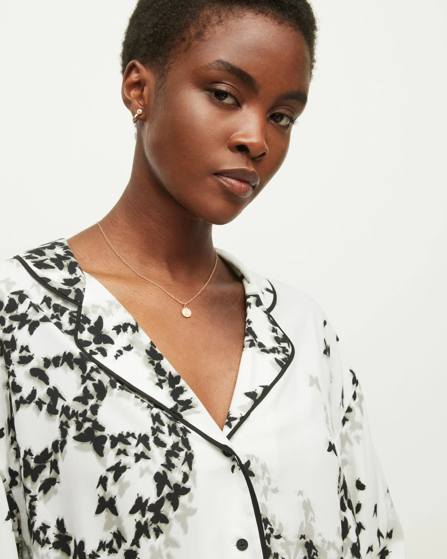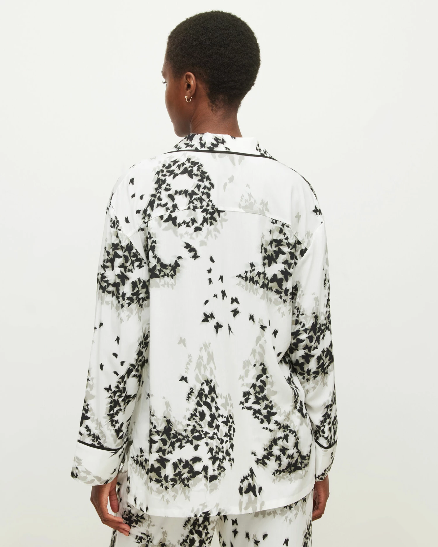 Sleepwear with sweet dreams guaranteed. The Safi Orsino Pyjama Shirt. It has a relaxed feel and is covered with our new monochromatic print. Piped around the edges for the finishing touch.