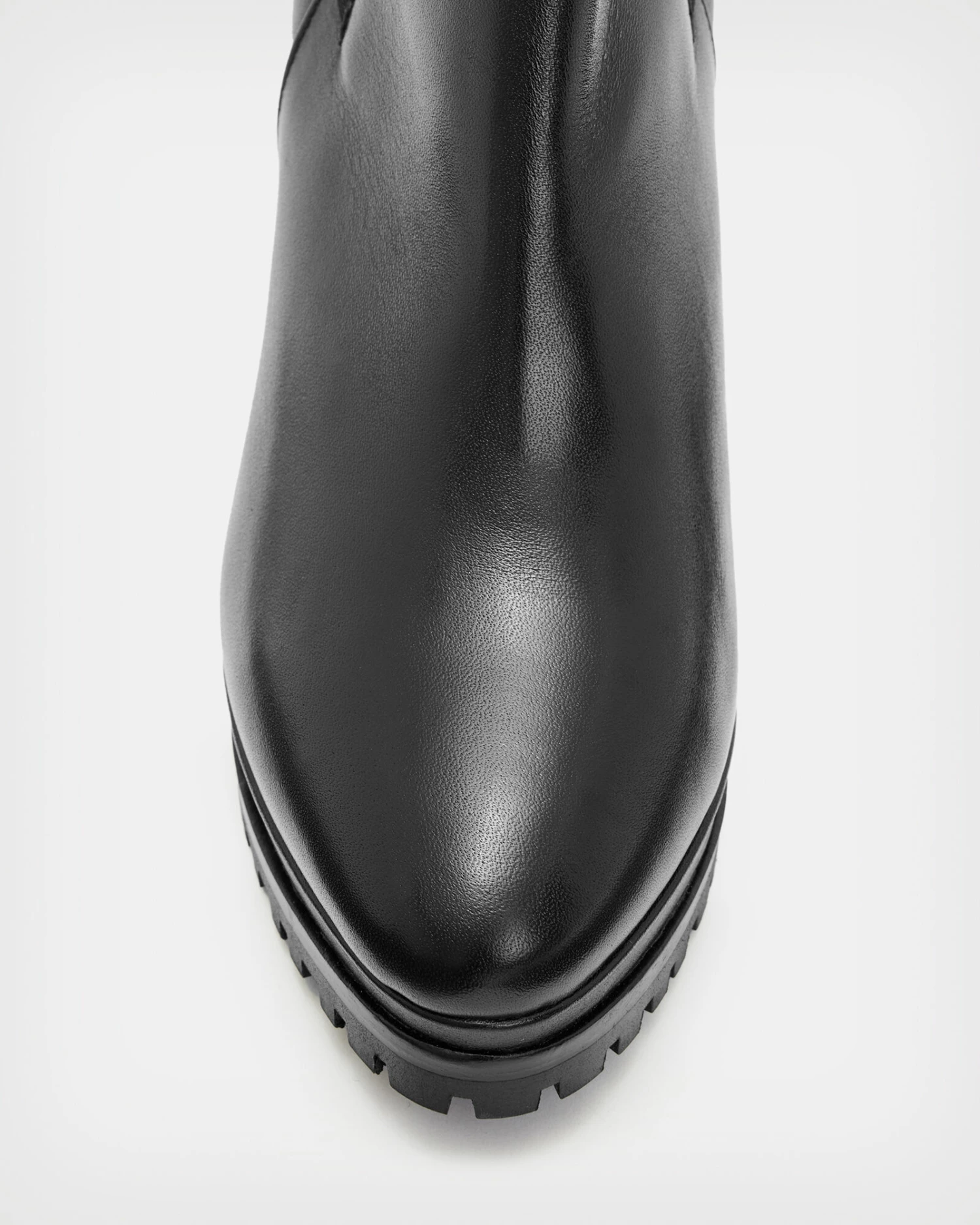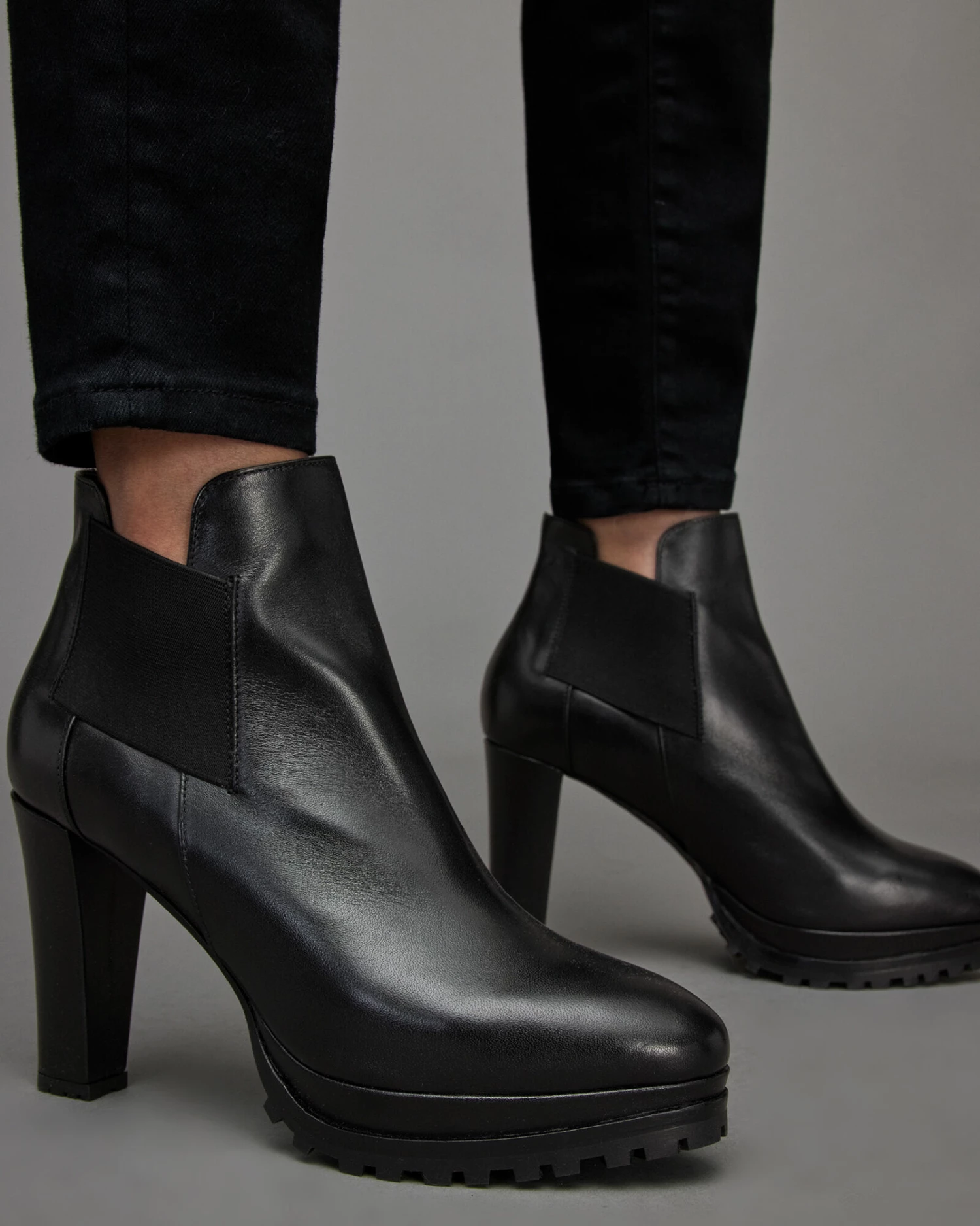 A day-to-evening essential. The Sarris boots are an AllSaints favourite. Shaped to a classic chelsea boot silhouette with a modern high block heel.