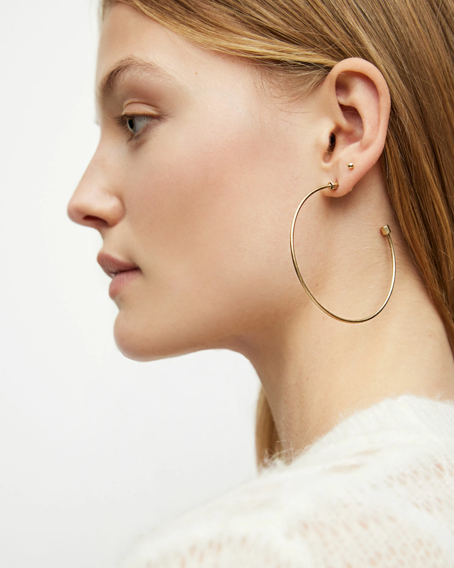 Hoops complete the outfit. This classic silhouette is always a go-to. The Skinny Hoops don’t need an introduction.