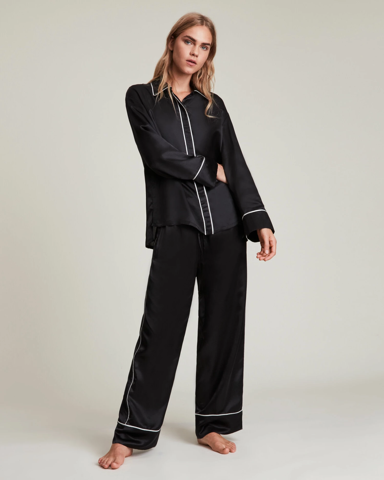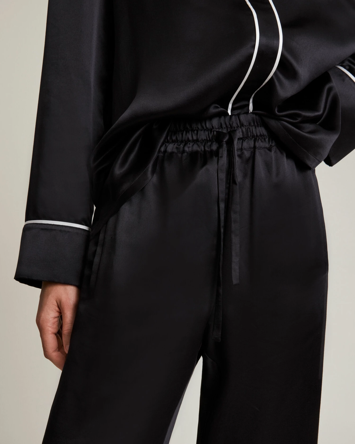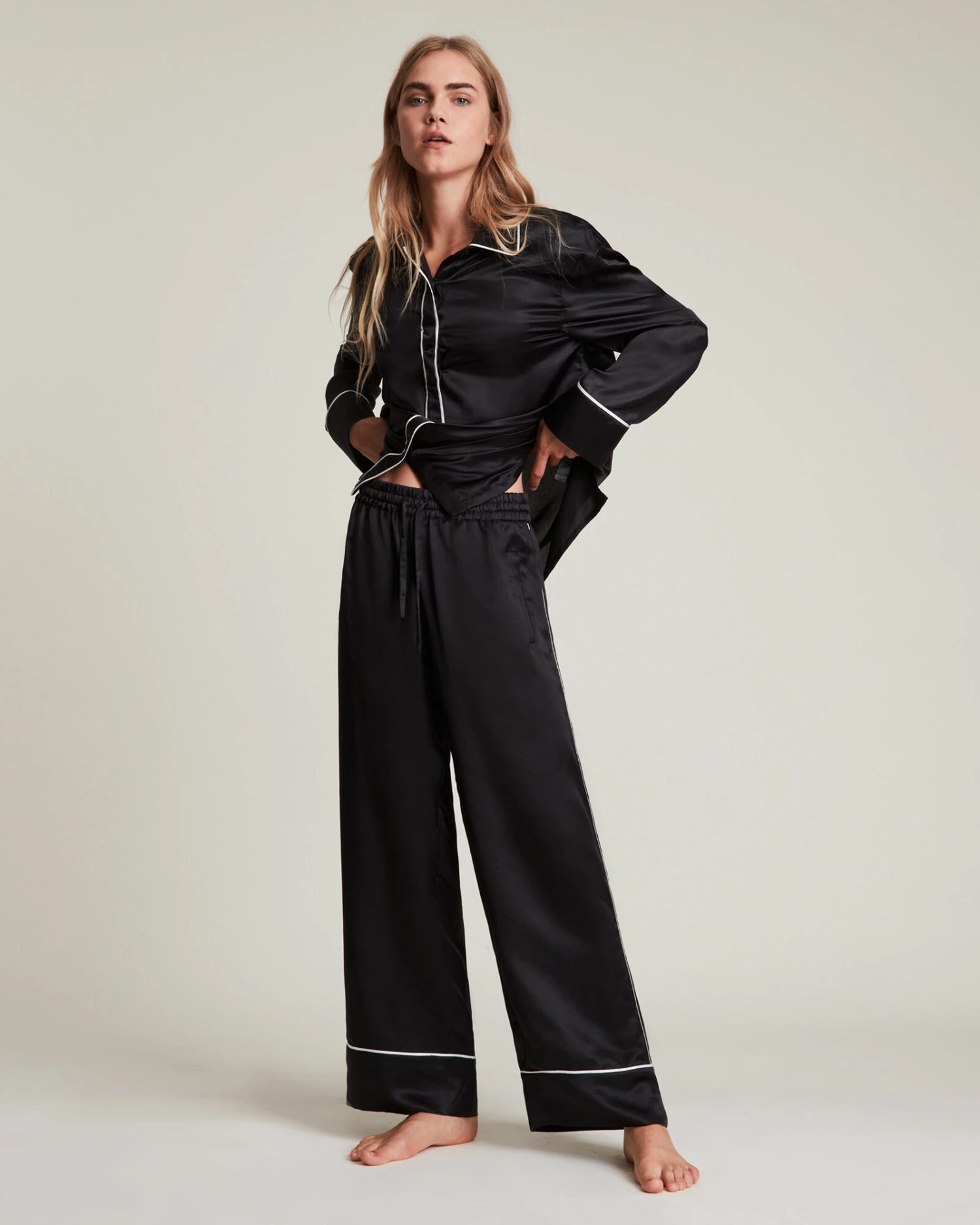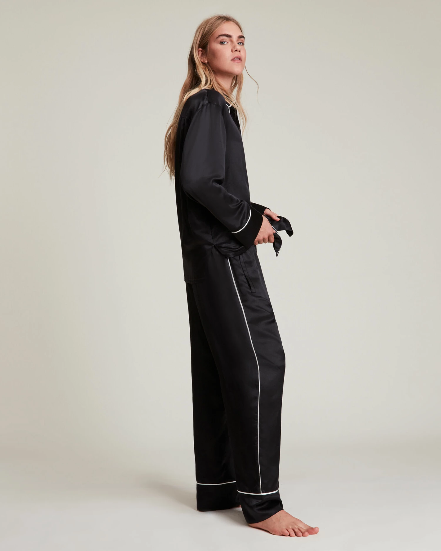 Sleepwear, it’s new around here. The Sofi Trousers is crafted from a conscious silk blend fabric and shaped to an easy silhouette. With contrast white piping through out. Part of a set, sweet dreams guaranteed.