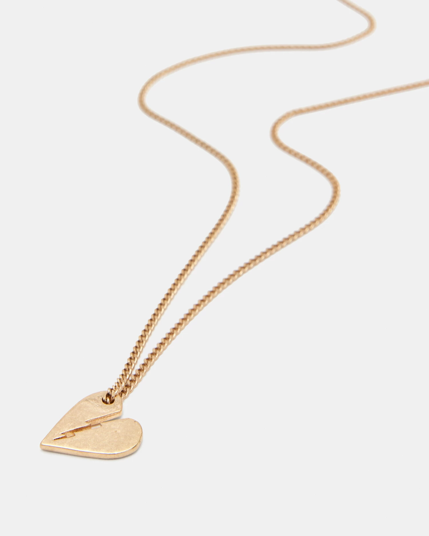 Let’s break it up – this is the Split Heart Necklace. An adjustable chain in a classic gold-tone, with our engraved broken heart pendant.