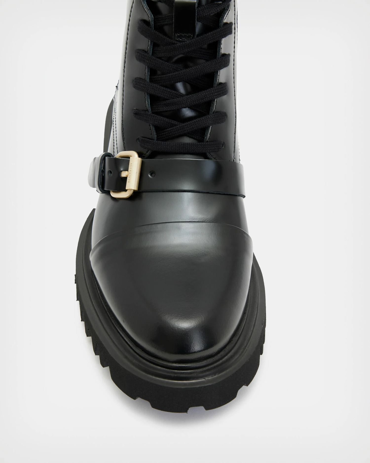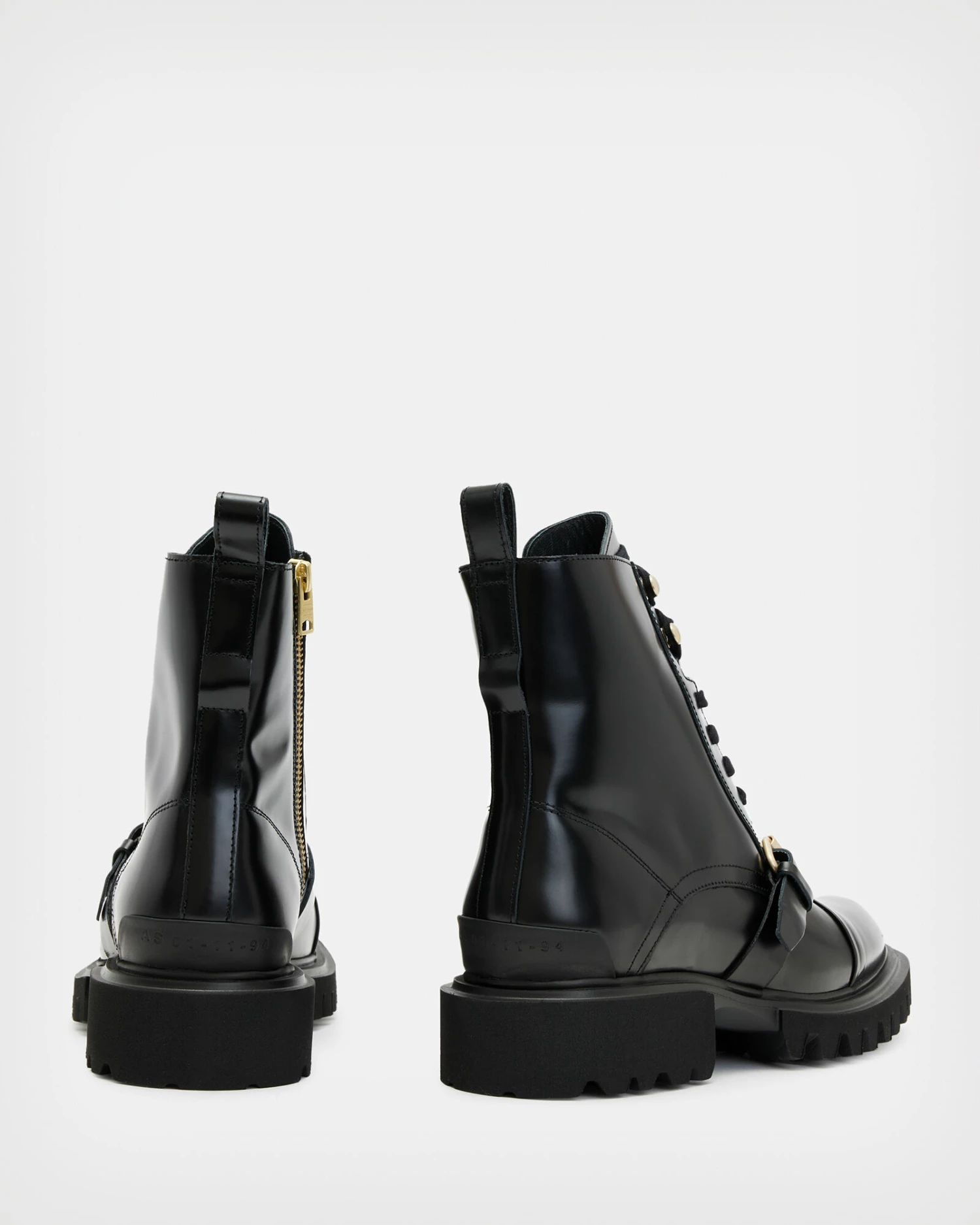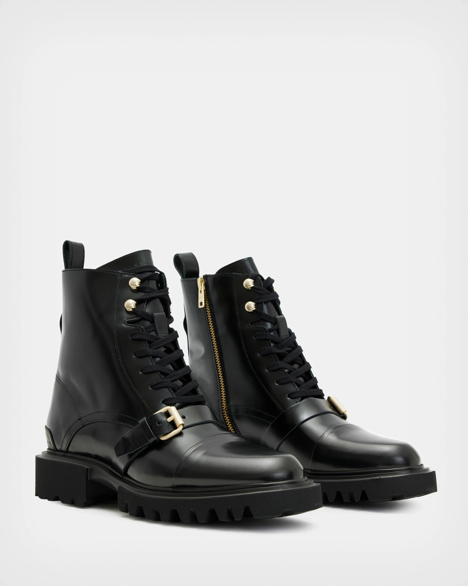 Buckle up. These are the Tori Boots. Crafted from leather with crossover laces and side zip closure. The sole is slightly chunky and the boots are detailed with our signature metal hardware – that’s the finishing touch.