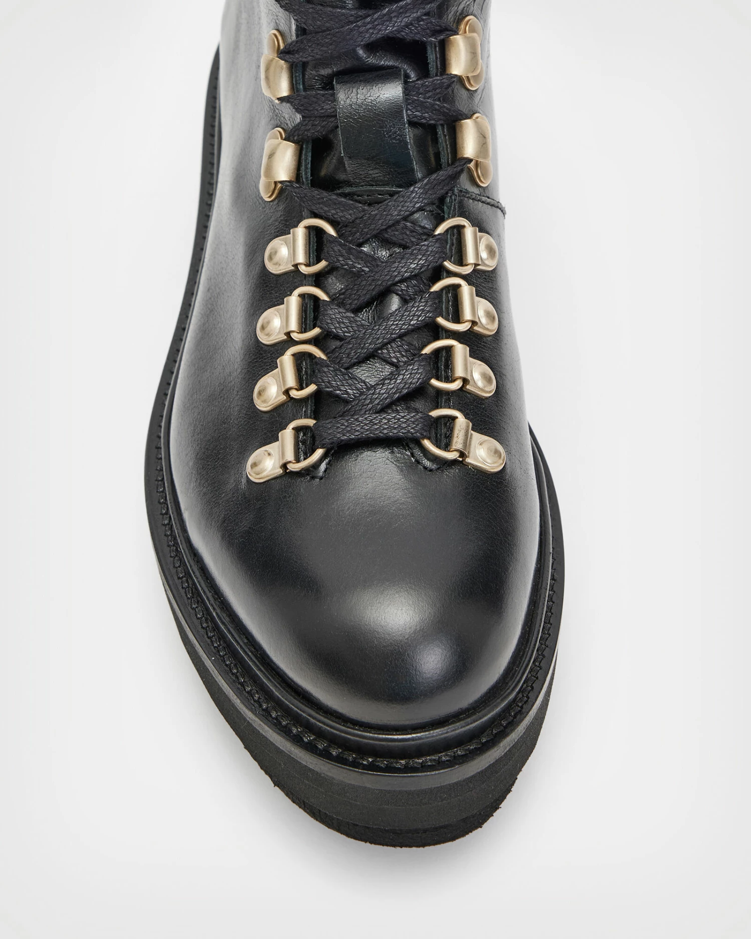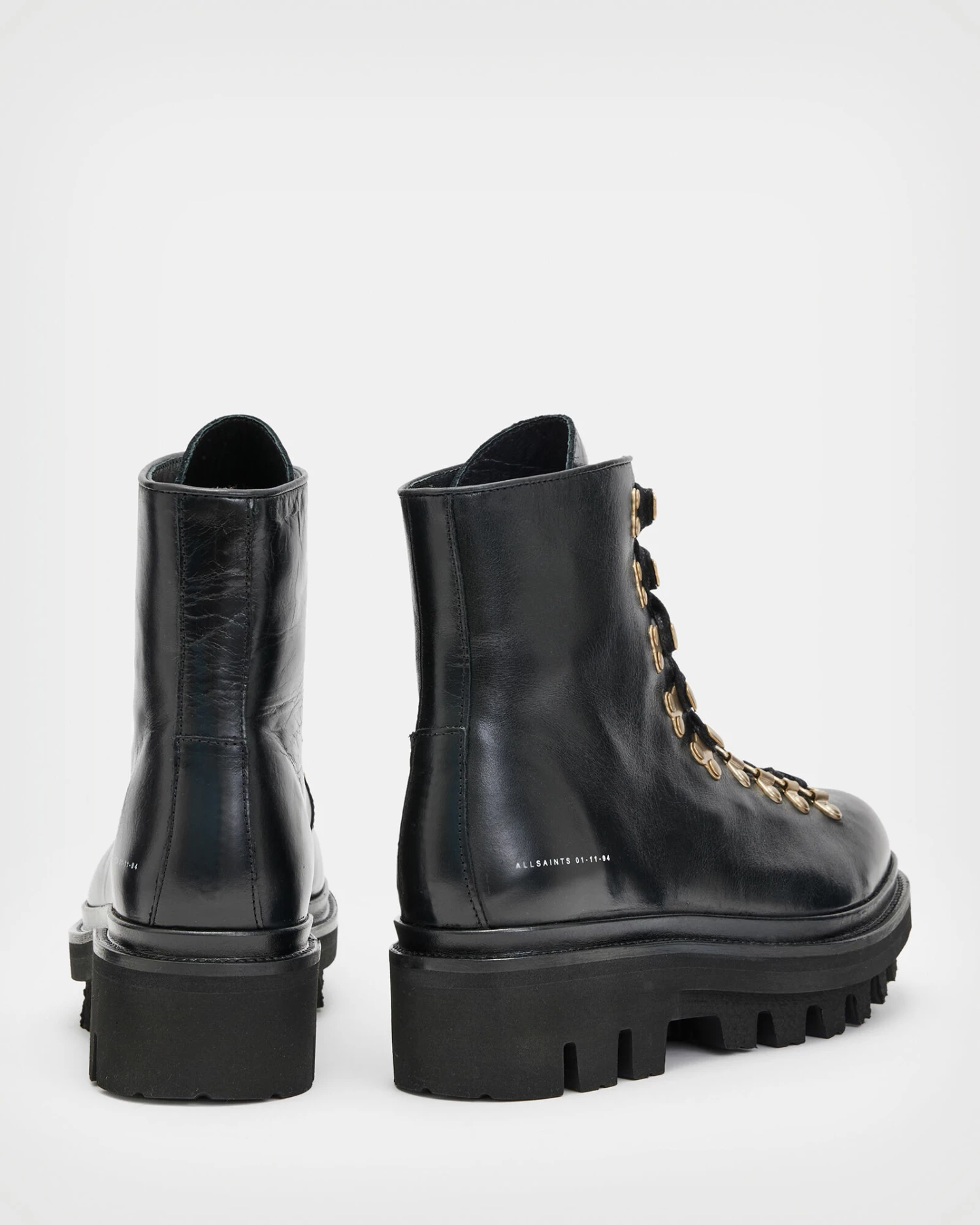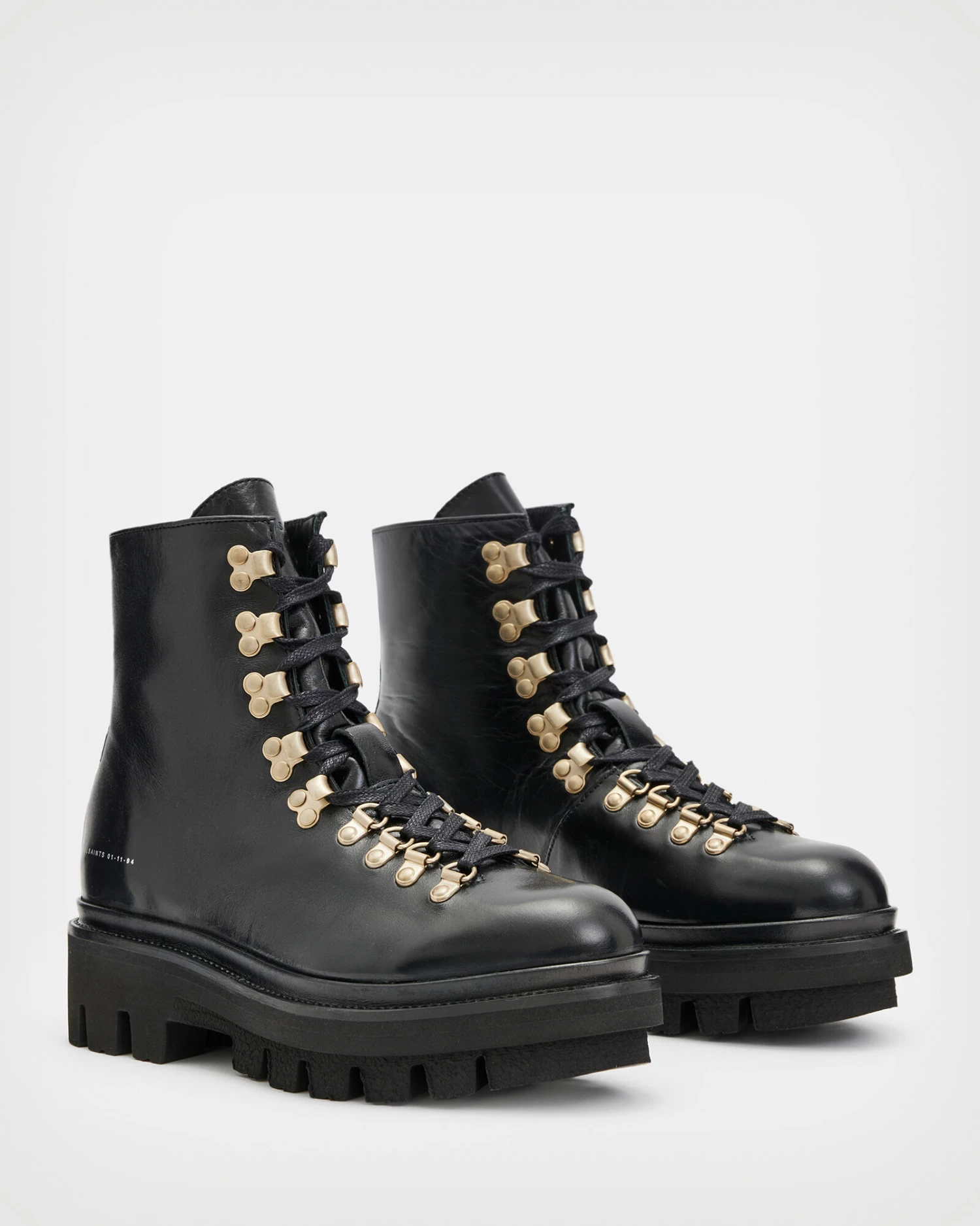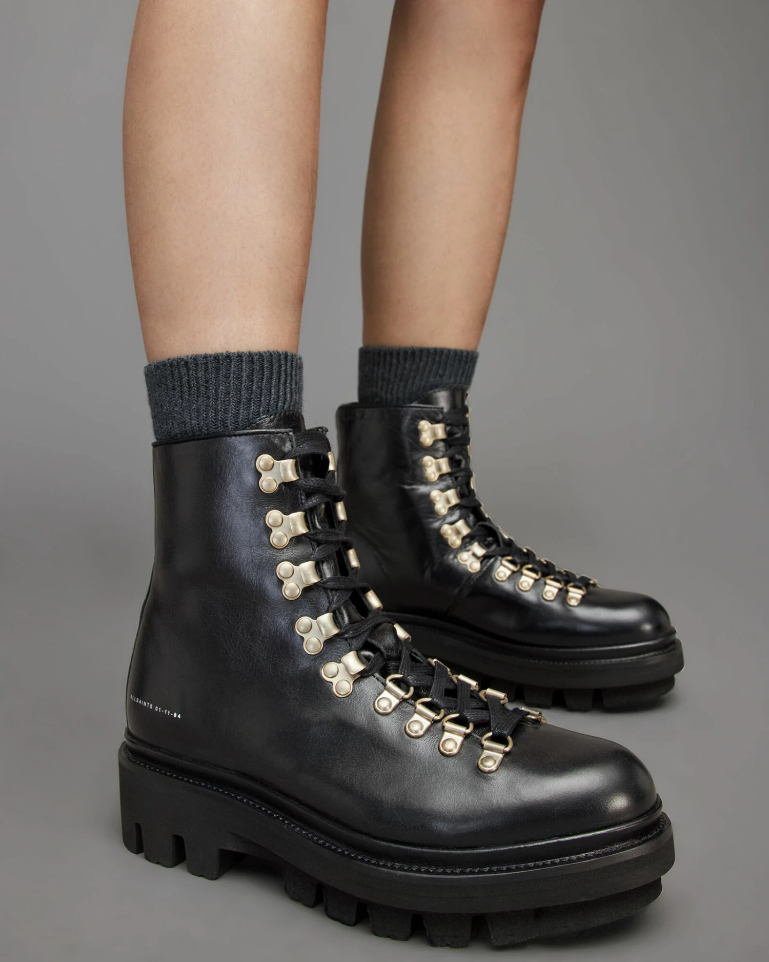 Take a hike or don’t. Just try our Wanda Boots. Crafted from smooth leather with metal hardware and a chunky cleated sole. Our signature features on the side.